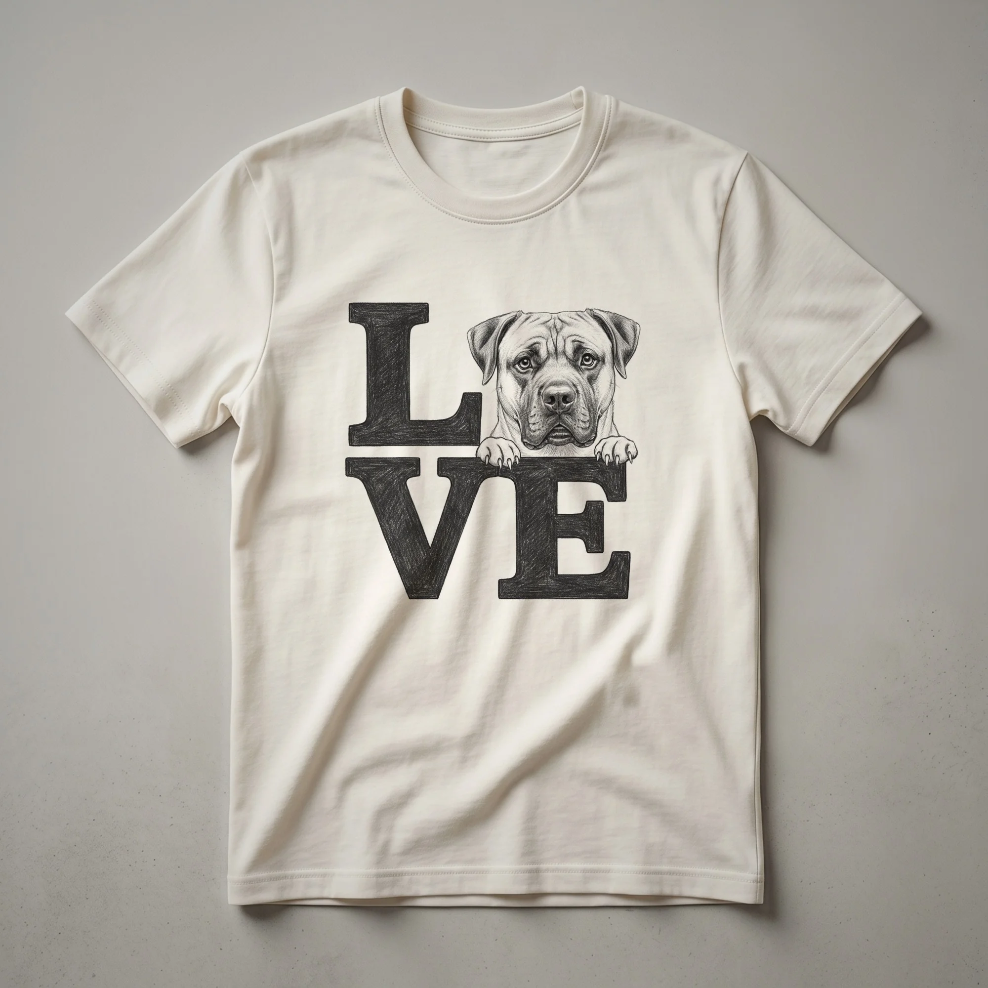 Boerboel owners know the loyalty and protective nature of this impressive South African breed. This graphic tee showcases a stylized head of a Boerboel, complete with a prominent heart symbol, making it clear where your affections lie. The Boerboel, developed as a farm dog and guardian, is known for its strength, confidence, and calm demeanor. This shirt is a fantastic way for any Boerboel mom or dad to express their connection to their canine companion. It’s a staple in the collection for those who understand the unique bond shared with these magnificent dogs. This t-shirt works well for casual outings, dog park visits, or simply relaxing at home with your furry friend. Looking for a gift for the Boerboel enthusiast in your life? This eye-catching design makes a thoughtful gift for birthdays, holidays, or any occasion where you want to celebrate their passion for this remarkable breed. Wear it to show your pride and love for your Boerboel.