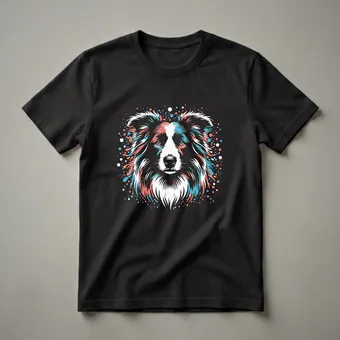 Border Collie owners know the breed's intelligence and boundless energy, often seen herding sheep with incredible focus. This eye-catching graphic tee captures the spirit of the breed with a vibrant, artistic portrait. The design features the distinctive black and white face of a Border Collie, rendered with bold strokes of coral, teal, and yellow, set against a deep black background. Splashes and dots of these vibrant colors surround the dog's head, creating a dynamic and modern aesthetic. This shirt is a thoughtful gift for any Border Collie mom or dad who cherishes their intelligent and loyal companion. It's a staple in the collection for those who appreciate unique dog-themed apparel. Wear this t-shirt to your next dog park visit or casual outing to spark conversations with fellow dog enthusiasts. The striking visual makes it a standout piece for any dog lover's wardrobe, celebrating the unique charm of this beloved breed. It's a great way to express your passion for your furry friend.