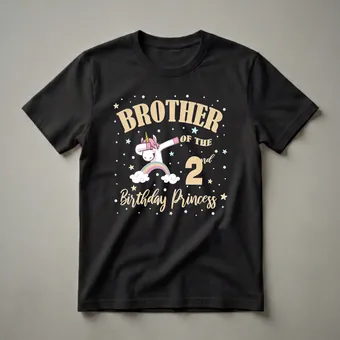 - This "Brother of the 2nd Birthday Princess" tee features a dabbing unicorn and pastel rainbow.