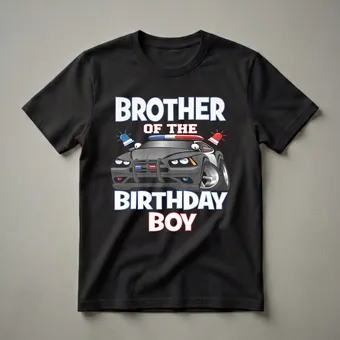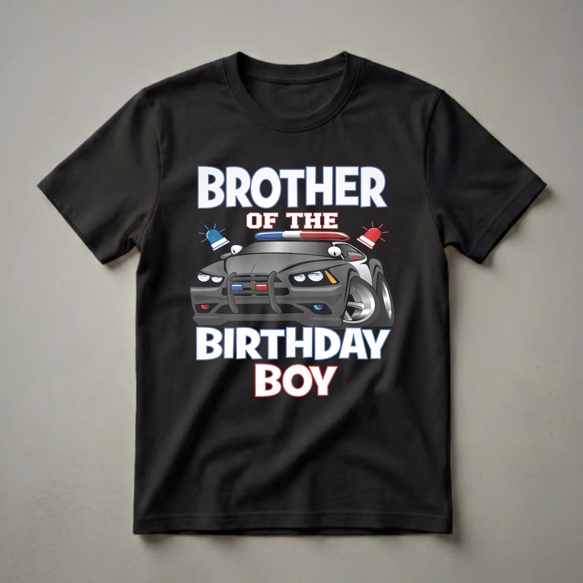 - This "Brother of the Birthday Boy" shirt showcases a fun police car graphic for the party.