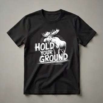 Moose, the largest members of the deer family, are iconic symbols of the wild, known for their impressive antlers and powerful presence. This striking graphic tee features a majestic bull moose, its grand rack of antlers dominating the frame, embodying determination and resilience. The bold text 'HOLD YOUR GROUND' is emblazoned across the chest, reinforcing the animal's stoic nature. Moose are often found in boreal forests and temperate broadleaf forests across the Northern Hemisphere, from North America to Eurasia, where they navigate dense woodlands and wetlands. This shirt is a perfect way for any wildlife enthusiast or hiker to express their connection to nature and the untamed spirit of the wilderness. It makes a thoughtful gift for anyone who admires these magnificent creatures or needs a reminder to stand firm in their convictions. Wear this t-shirt on your next outdoor adventure or casual outing to showcase your appreciation for these incredible animals.