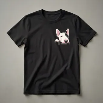 Bull Terrier moms know their breed's distinctive egg-shaped head and playful spirit. This graphic tee captures that charm with a Bull Terrier peeking over a faux denim pocket. The illustration style uses bold lines and shading to bring the dog's face to life, with its signature black eye patch and alert ears. Bull Terriers, originally bred in 19th-century England for bull-baiting and later for dog fighting, have evolved into beloved family companions known for their loyalty and sometimes mischievous nature. This shirt is a thoughtful gift for any Bull Terrier owner who appreciates the breed's unique character. It's a go-to tee for casual outings, dog park visits, or just lounging at home with your furry friend. The design is a conversation starter, sure to bring smiles to fellow dog lovers. Wear this shirt to express your affection for your four-legged family member and celebrate the joy they bring into your life.