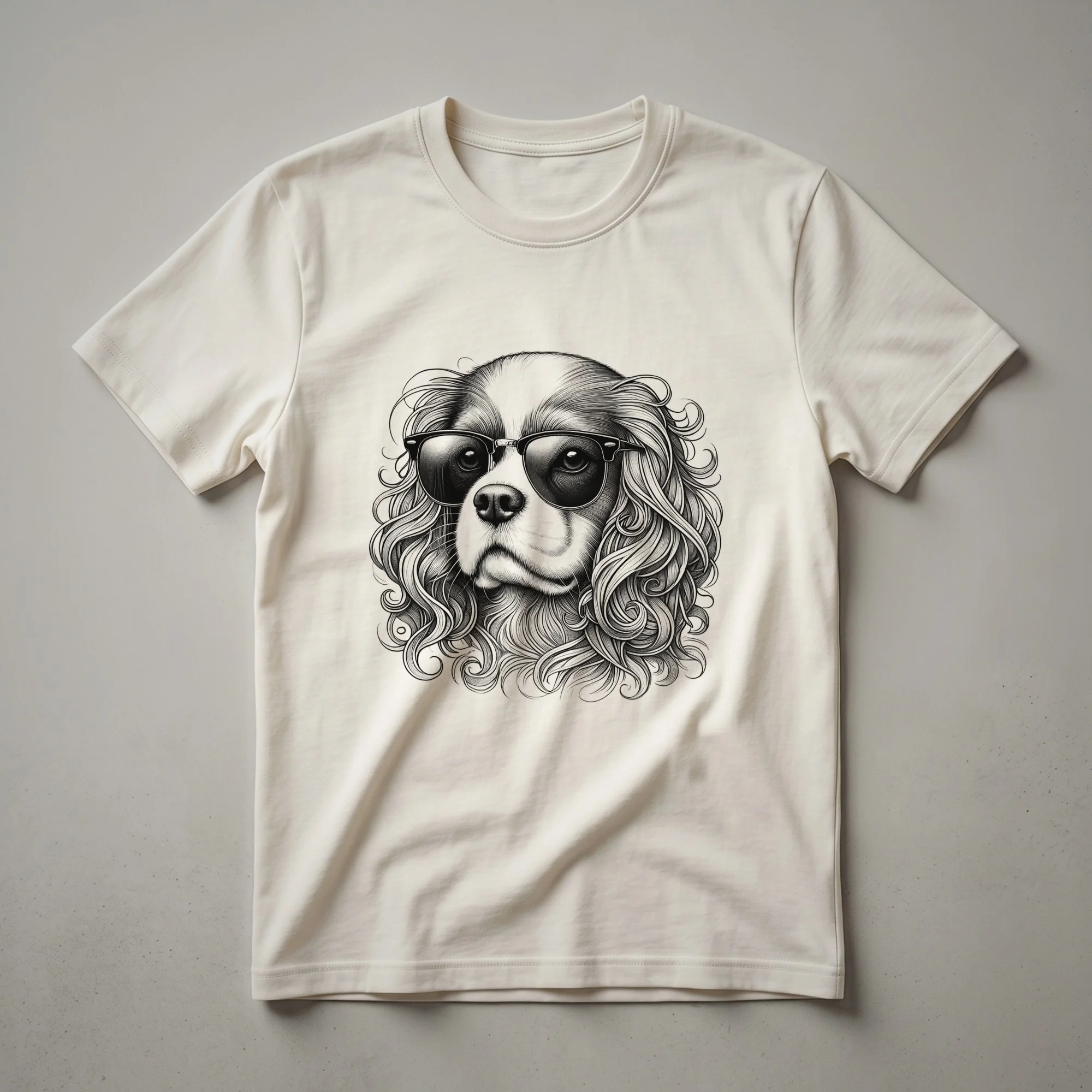 - Features a cool Cavalier King Charles Spaniel wearing sunglasses.