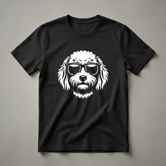 Dog lovers will adore this graphic tee featuring a cool Cavapoo sporting stylish sunglasses, capturing their breed's playful and confident personality.This graphic tee captures that playful spirit with a striking white design of a Cavapoo's face sporting a pair of cool sunglasses. The stylized fur and closed eyes give the dog a relaxed, confident look, making this shirt a unique statement piece. Cavapoos, a crossbreed between a Cavalier King Charles Spaniel and a Poodle, are known for their friendly demeanor and hypoallergenic coats, making them popular companions. This t-shirt is a fantastic way for any proud Cavapoo mom or dad to express their affection for their furry friend. It's a go-to tee for casual outings, dog park visits, or just lounging at home. Looking for a gift for the Cavapoo enthusiast in your life? This eye-catching shirt makes a thoughtful gift for birthdays, holidays, or any occasion. Celebrate the bond you share with your canine companion by wearing this distinctive dog graphic tee. It's more than just apparel; it's a declaration of your love for your four-legged family member.