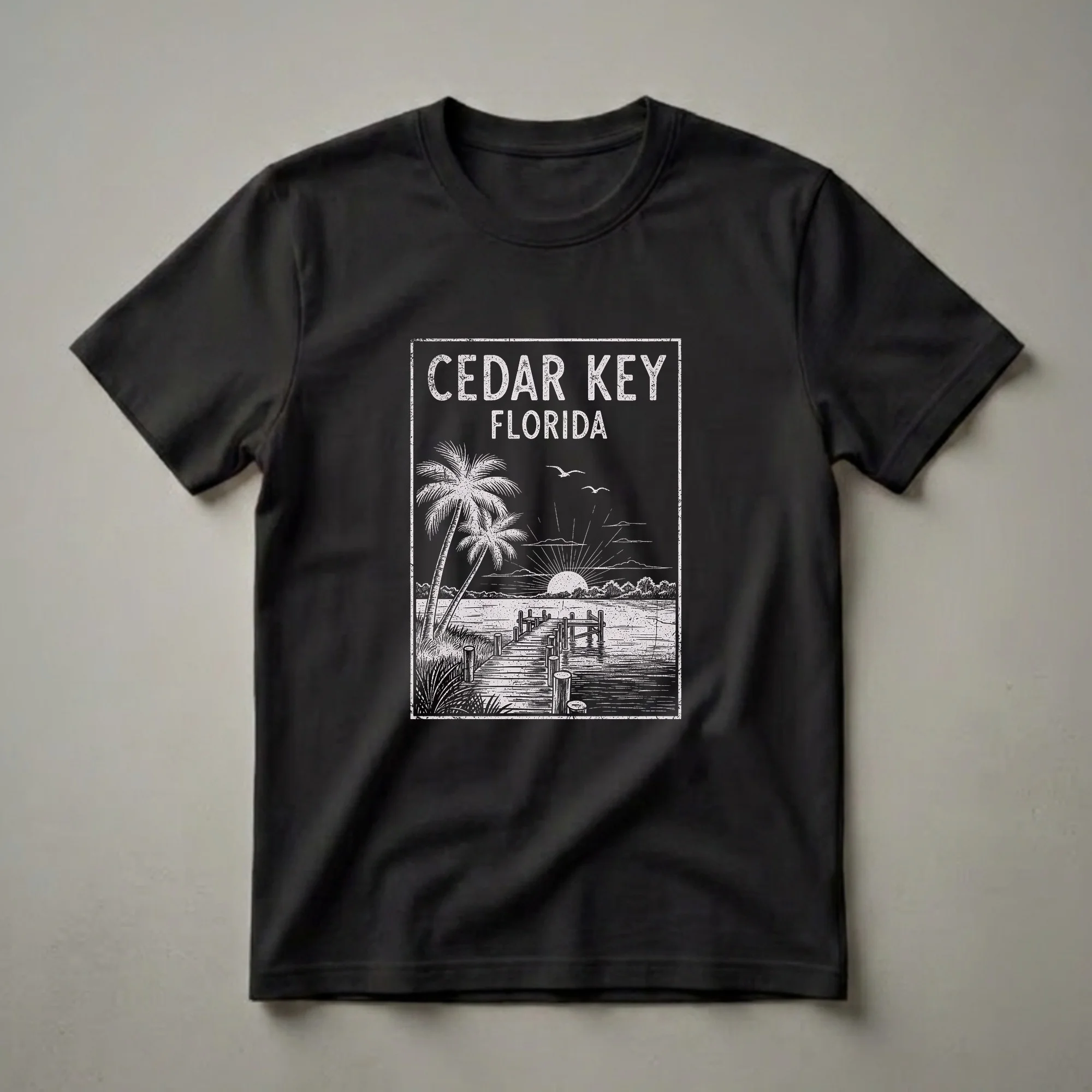Hover to zoom · tap to expand Cedar Key Florida Vintage Sunset Pier Graphic T-Shirt