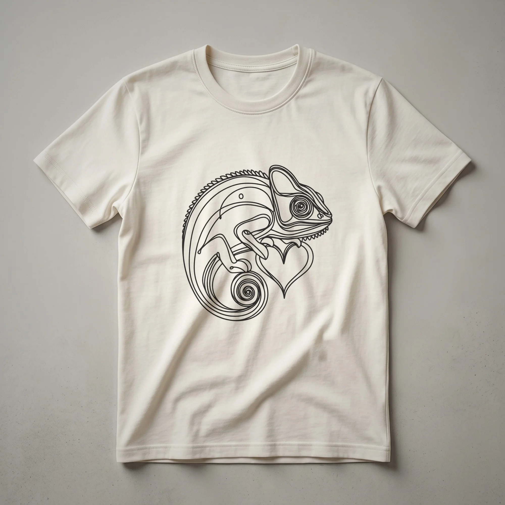 - Chameleon line art graphic tee for reptile lovers.
