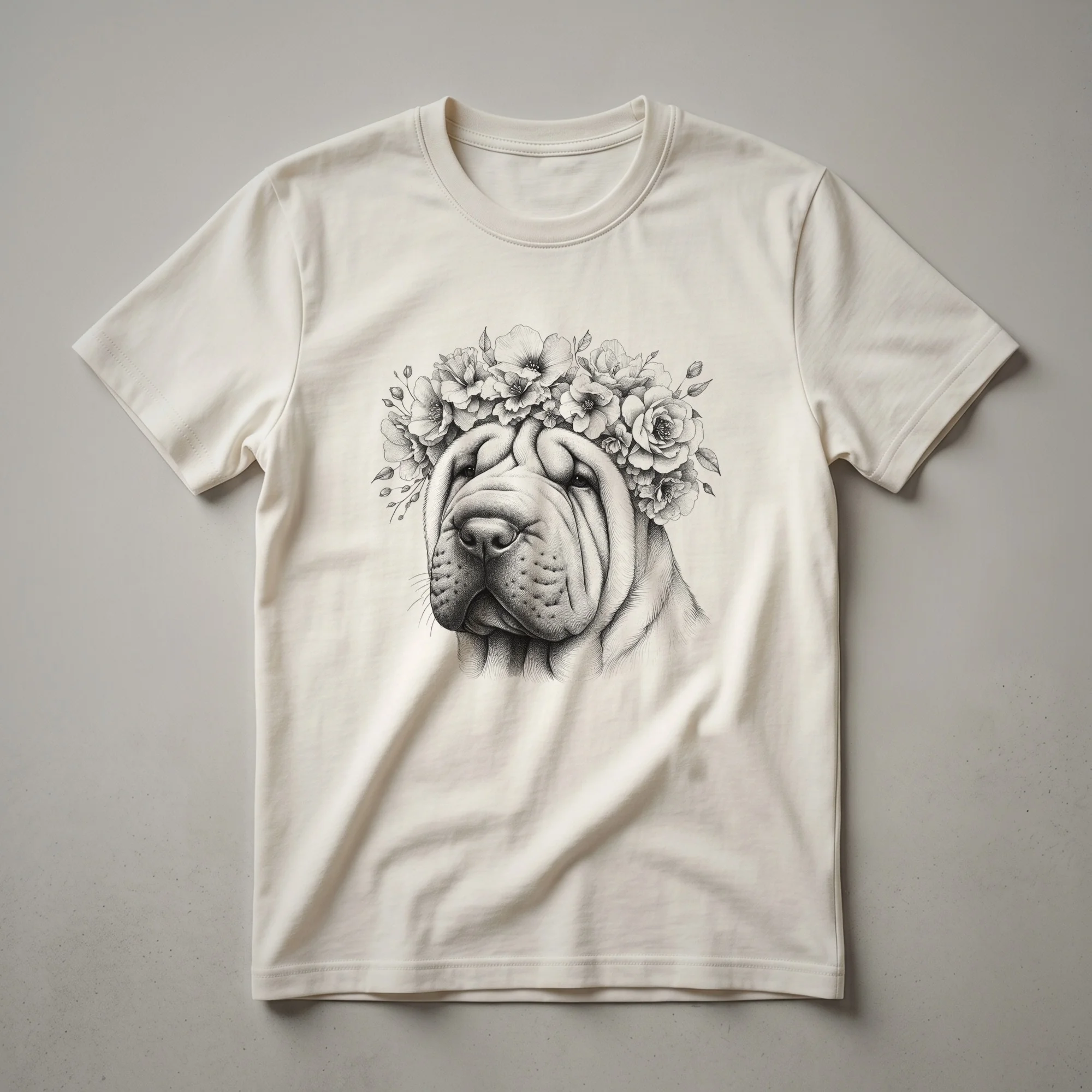 Hover to zoom · tap to expand Chinese Shar Pei Dog Floral Graphic T-Shirt for Women and Girls