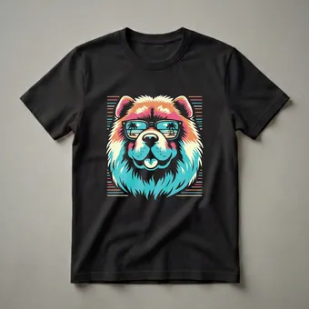 Chow Chow owners know the breed's distinctive lion-like mane and dignified demeanor. This eye-catching graphic tee captures that spirit with a colorful, stylized portrait of a Chow Chow sporting cool sunglasses. The lenses of the sunglasses reflect a serene beach scene complete with palm trees, a sandy shore, and a bright sun, evoking a relaxed, vacation vibe. The design uses a bold, retro color palette of teal, orange, pink, and cream against a black background, giving it a striking, vintage feel. This t-shirt is a fantastic way for any Chow Chow mom or dad to express their affection for their furry companion. It makes a thoughtful gift for birthdays, holidays, or just because for the dog lover in your life who appreciates unique canine art. Wear this shirt to casual outings, dog park visits, or while relaxing at home, and let your love for your Chow Chow shine through. This shirt is a true conversation starter.