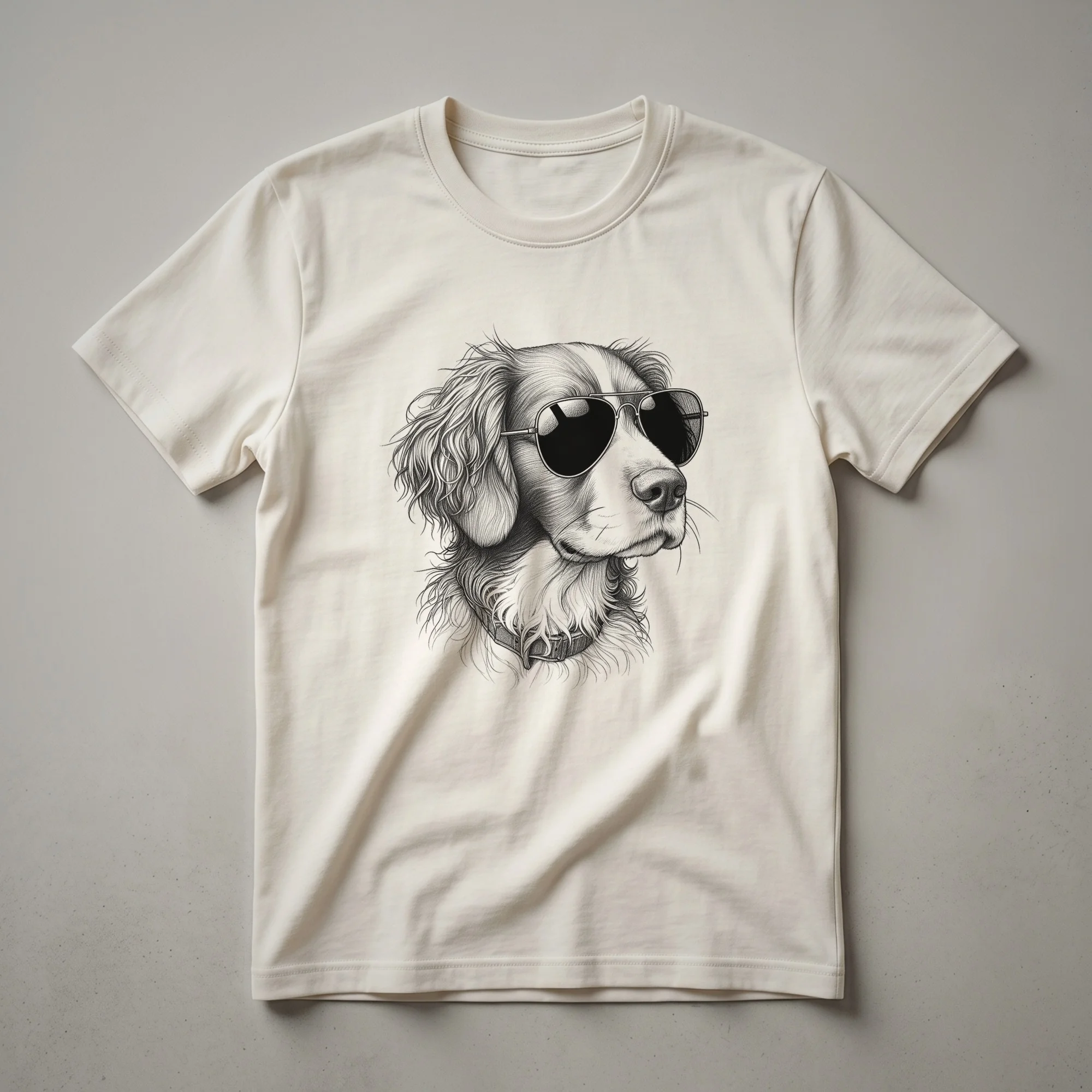 Brittany Spaniel owners know the breed's energetic and affectionate nature, often described as a 'happy dog.' This eye-catching t-shirt captures that spirit with a striking graphic of a Brittany Spaniel sporting cool sunglasses. The design is printed on a comfortable tee, making it a go-to choice for casual wear. Whether you're heading out for a walk in the park or relaxing at home, this shirt is a fantastic way to express your admiration for this distinctive breed. It makes a thoughtful gift for the Brittany Spaniel dad or mom in your life who appreciates unique dog-themed apparel. This shirt is a staple for any dog lover's wardrobe, offering both style and a conversation starter. Wear it to your next dog park visit or a casual get-together.