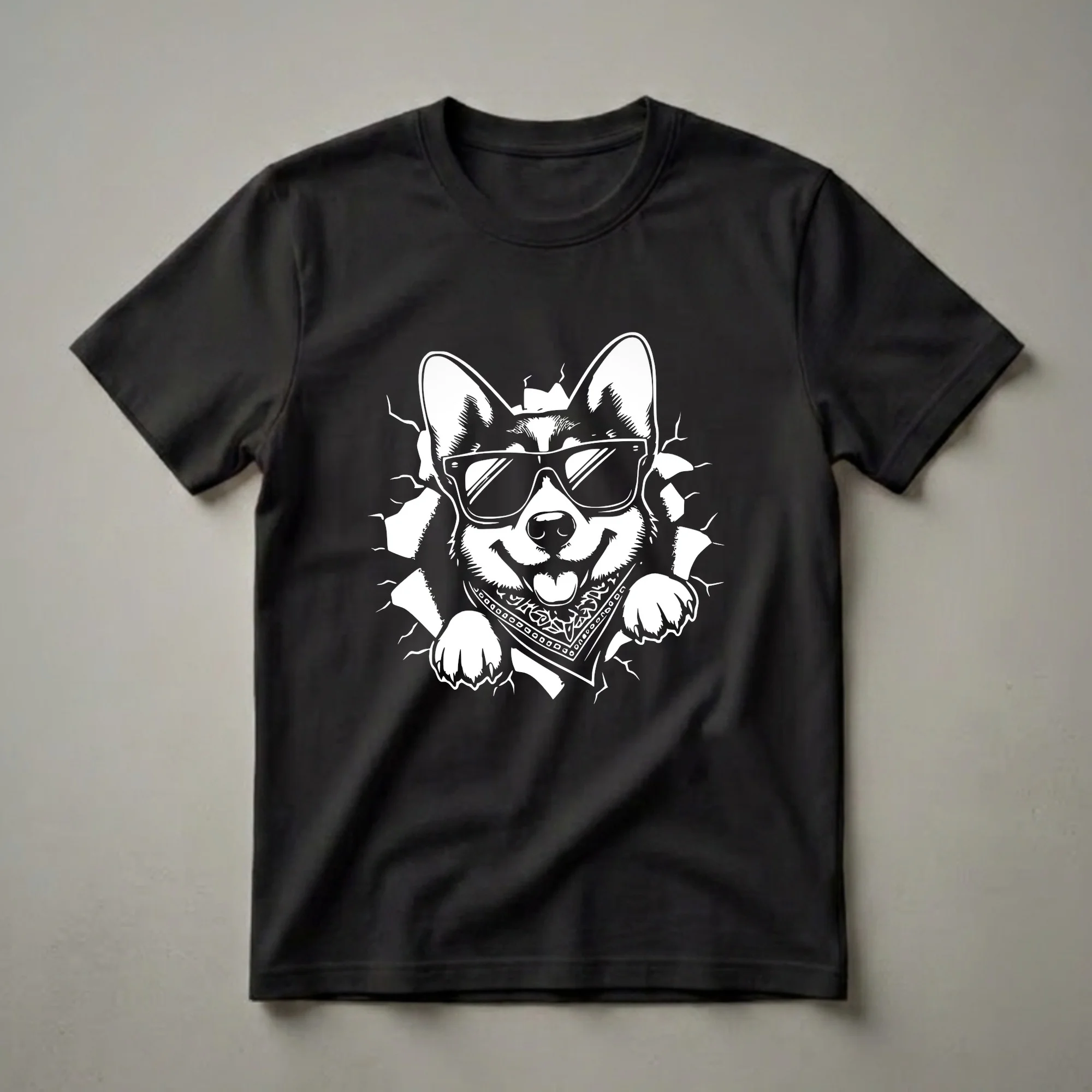 - Features a cool Corgi dog graphic wearing sunglasses and a bandana.