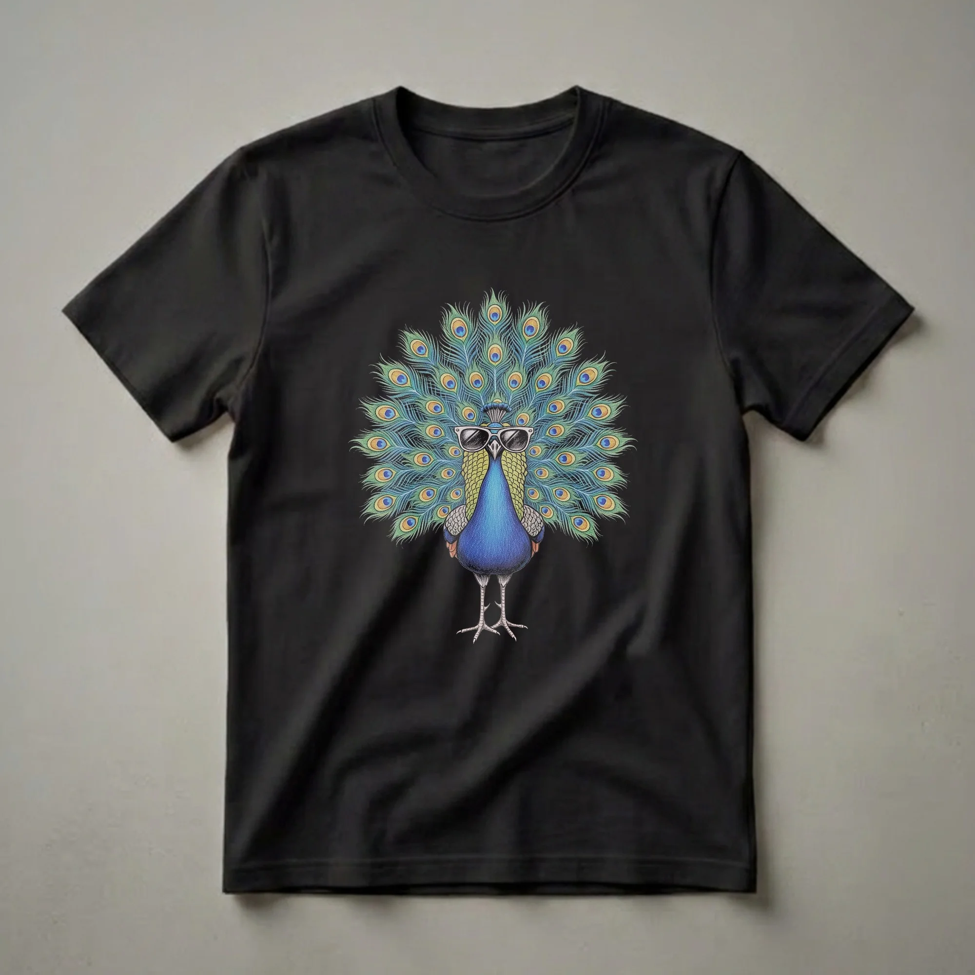 Hover to zoom · tap to expand Cool Peacock Wearing Sunglasses Graphic T-Shirt for Bird Lovers