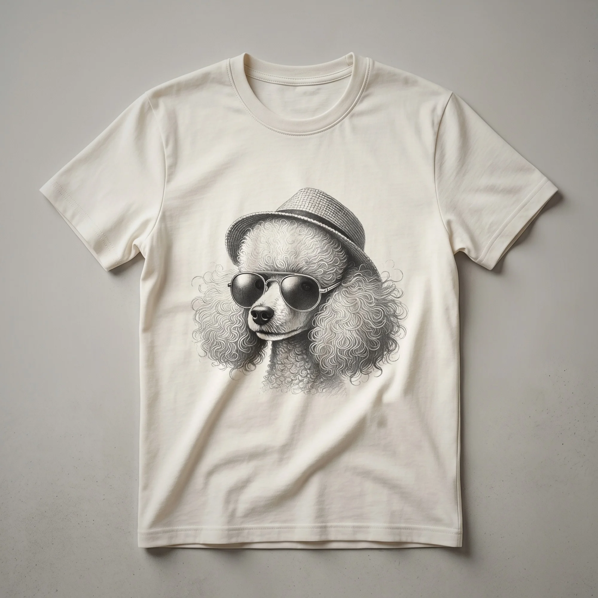 Poodle owners who appreciate a touch of flair will reach for this eye-catching graphic tee. The design showcases a stylish poodle sporting a pair of cool sunglasses, exuding a confident and playful vibe. Poodles, known for their intelligence and distinctive curly coats, are one of the oldest dog breeds, originating in Germany where they were bred as water retrievers. This shirt is a fantastic way for any poodle enthusiast to express their affection for their beloved canine companion. It makes a thoughtful gift for the poodle mom or dad in your life, or for anyone who simply admires these elegant dogs. Wear this t-shirt to casual outings, dog park visits, or simply while relaxing at home, letting your passion for poodles shine through. This comfortable tee is a staple for any dog lover's wardrobe, offering a unique blend of style and personality. Celebrate your furry friend with this striking poodle apparel.
