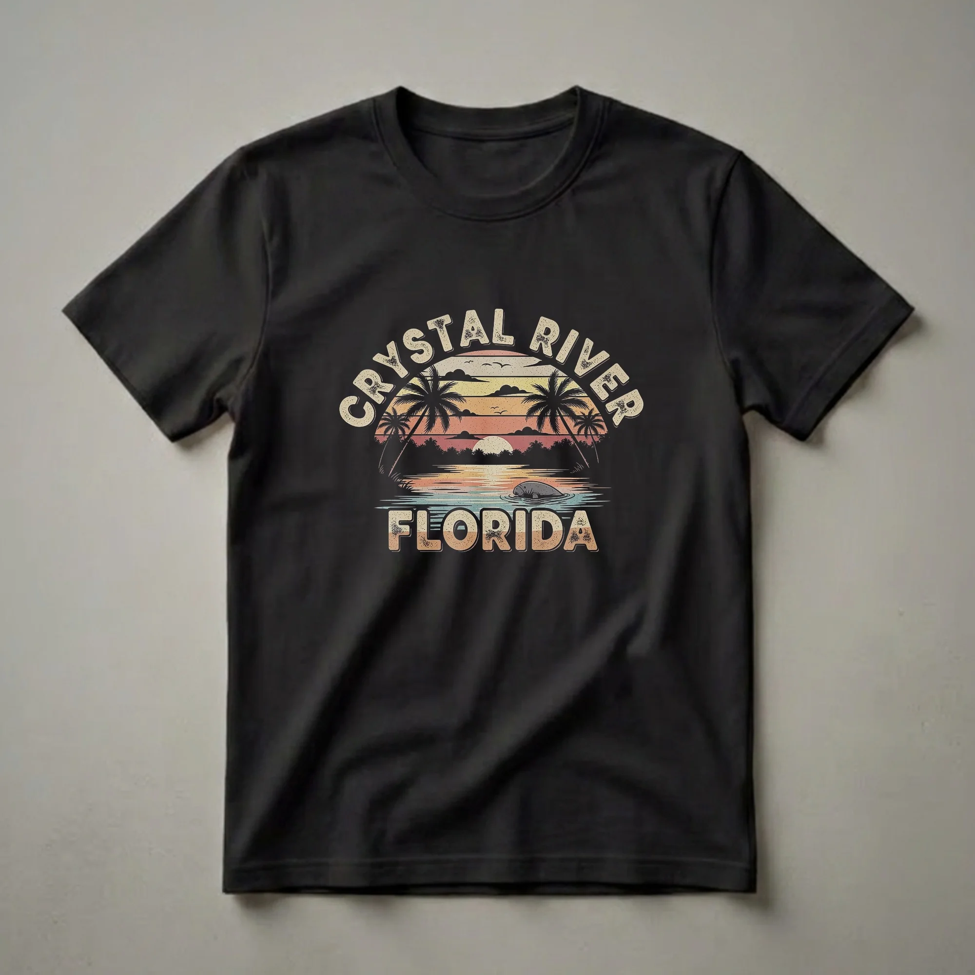 - Retro Crystal River, Florida sunset graphic tee.