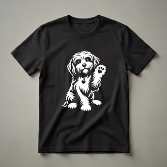 Showcase your love for your fluffy four-legged friend with this adorable Cavapoo graphic t-shirt featuring a sweet stencil-style dog. This graphic tee captures that spirit with a charming white stencil design of a fluffy Cavapoo, complete with a heart pendant on its collar and a raised paw as if to wave hello. The design is rendered in a clean, bold style, making it stand out on any shirt color. Cavapoos, a crossbreed between a Cavalier King Charles Spaniel and a Poodle, are known for their friendly disposition and low-shedding coats, making them popular companions. This shirt is a wonderful way for any Cavapoo mom or dad to express their devotion to their furry family member. It makes a thoughtful gift for birthdays, holidays, or just because for the dog lover in your life who cherishes their canine companion. Wear this tee to your next dog park visit, a casual outing with friends, or simply while relaxing at home with your beloved pet. It’s a staple in the collection for anyone who believes dogs are family.