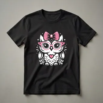 Hover to zoom · tap to expand Cute Owl with Pink Glasses and Bow Graphic T-Shirt for Girls