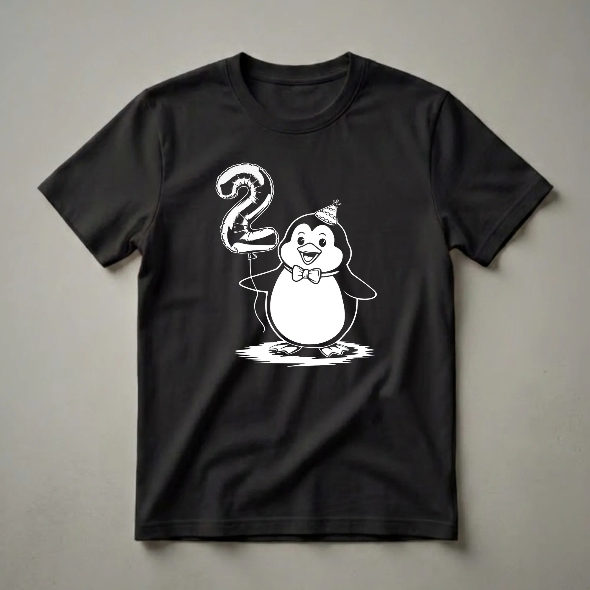 - Dress your 2-year-old in this festive penguin t-shirt, perfect for birthday photos or parties.