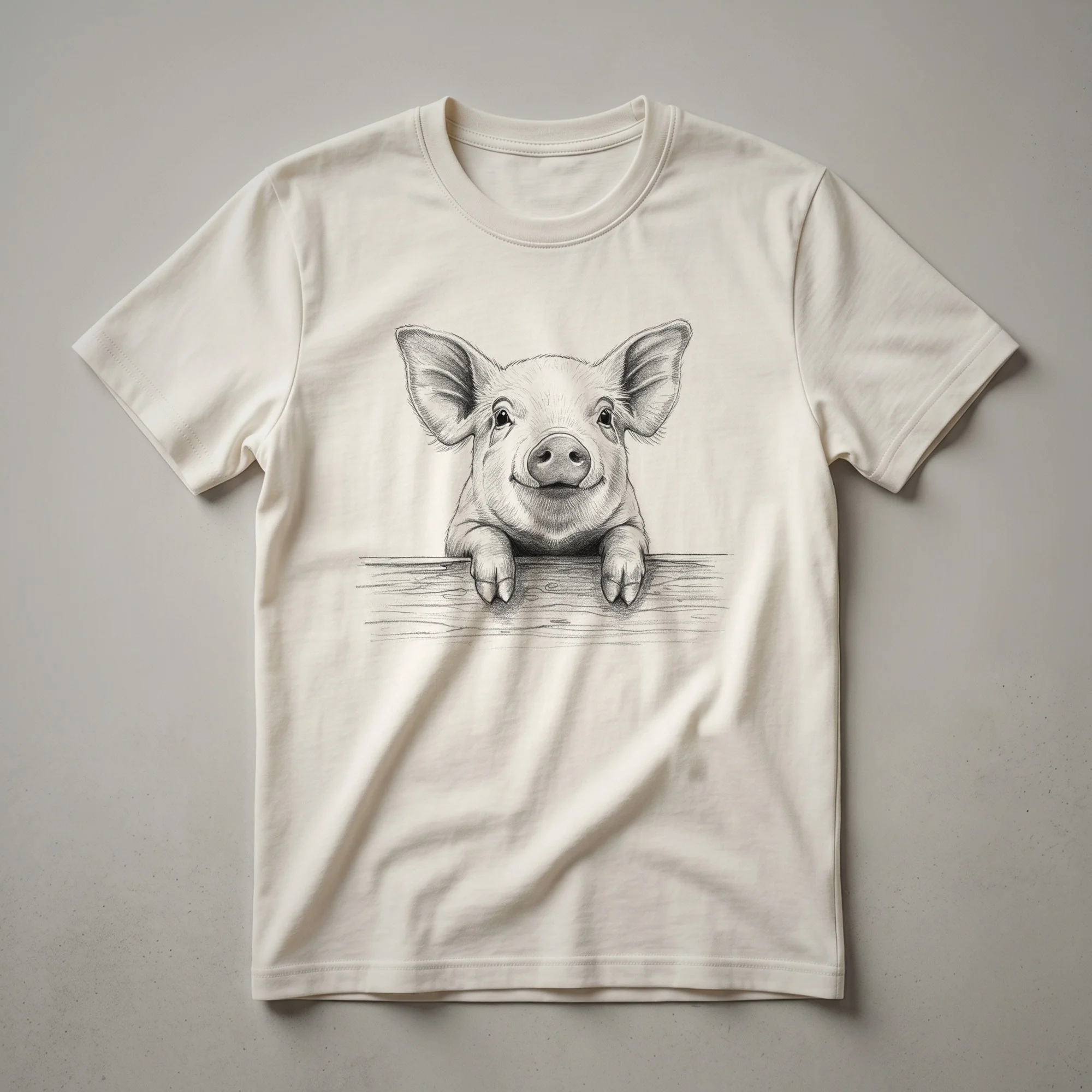 - This pig peeking over a fence t-shirt is a charming addition to any farm lover's wardrobe.