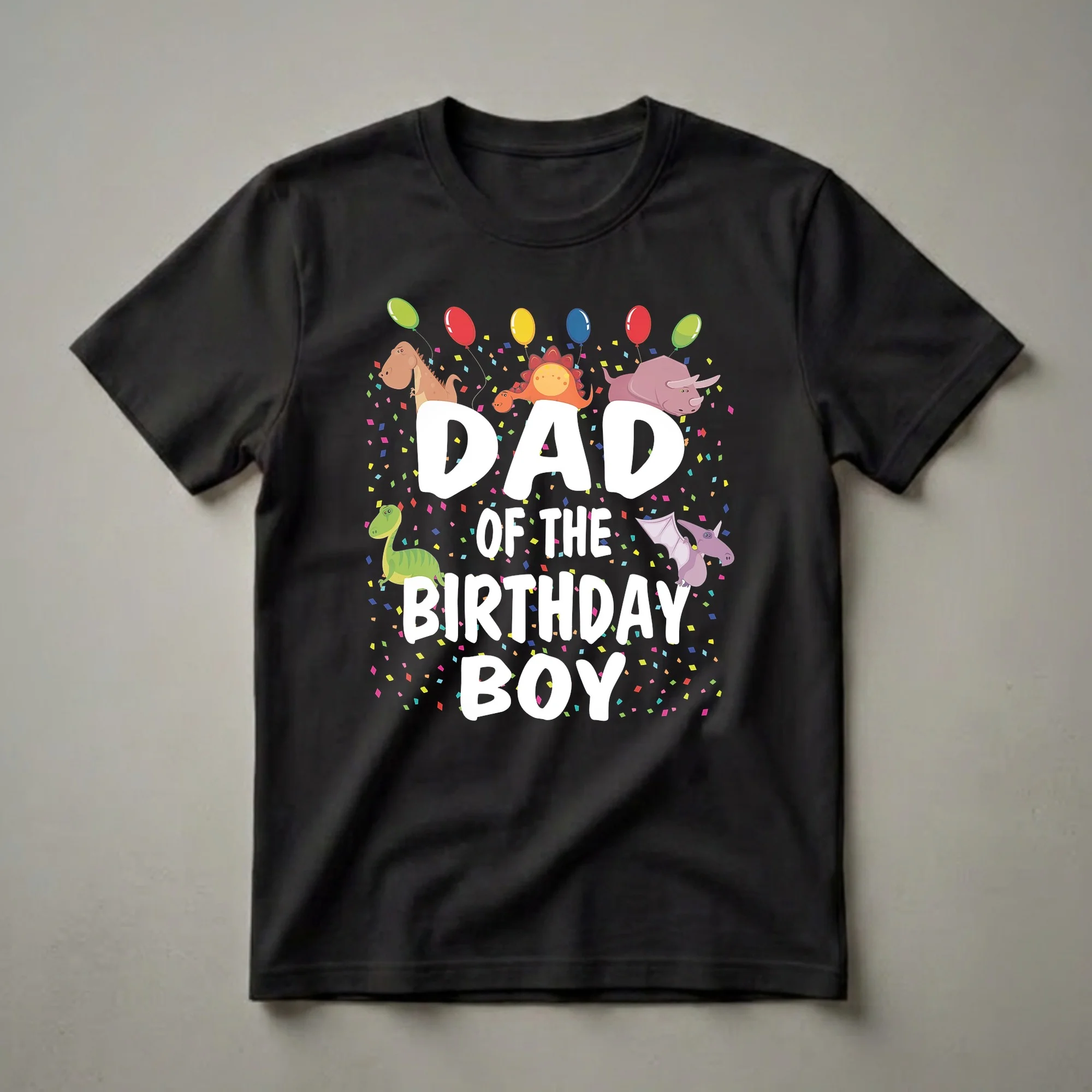 - Dad Of The Birthday Boy t-shirt for fathers celebrating their son's dinosaur-themed birthday.