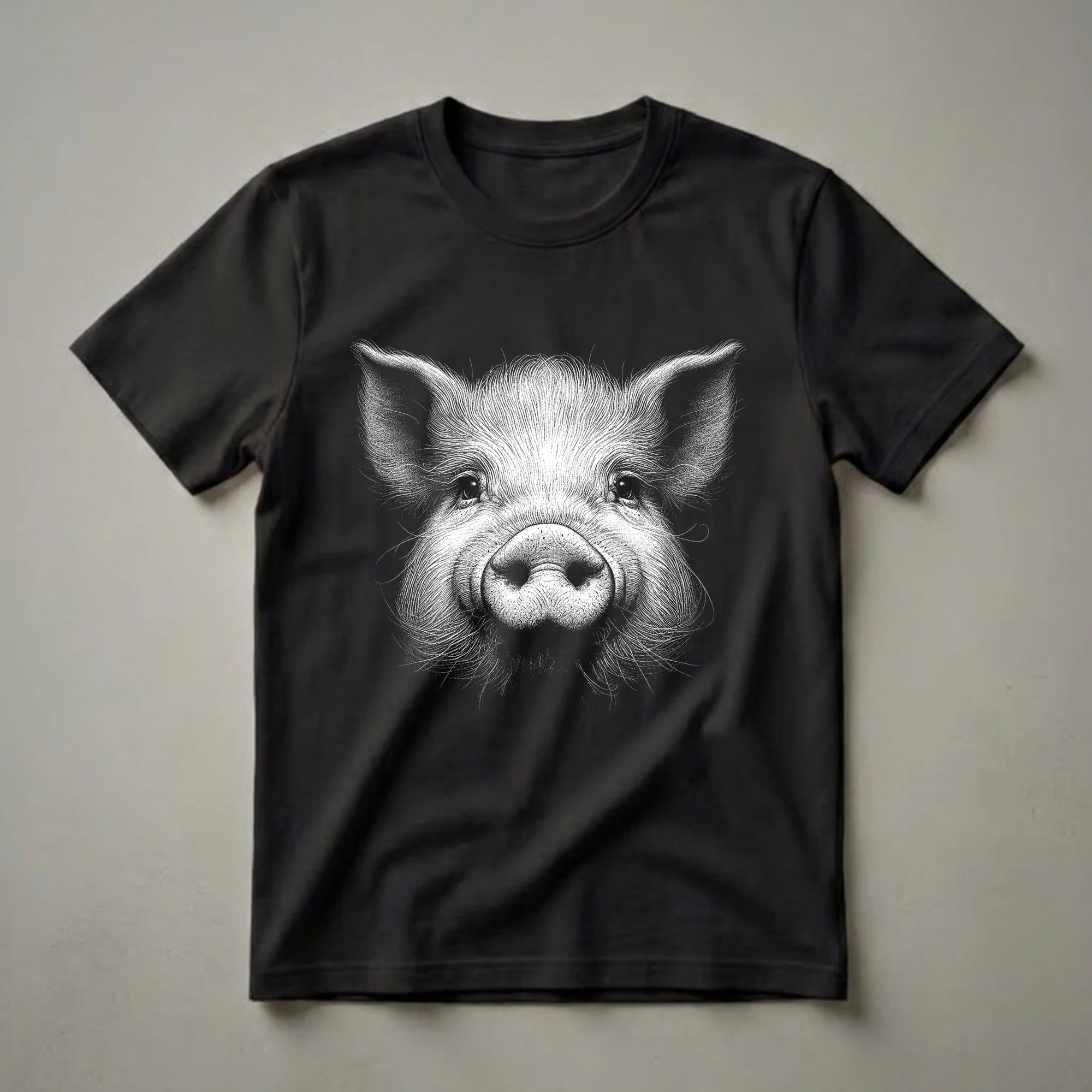 Hover to zoom · tap to expand Detailed Pig Face Stipple Art Graphic T-Shirt for Animal Lovers