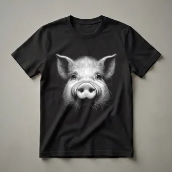 Pigs are known for their intelligence and playful nature, often surprising people with their capacity for learning and social interaction. This eye-catching graphic tee features a highly detailed, black and white stipple art illustration of a pig's face, focusing on the intricate textures of its snout, eyes, and bristly hair. The artwork uses thousands of tiny dots to create shading and depth, giving the pig a lifelike yet artistic appearance. This t-shirt is a thoughtful gift for anyone who has a soft spot for these often-misunderstood animals, or for those who simply appreciate unique and striking animal art. It's a go-to tee for casual outings, game nights, or just lounging around the house. The detailed rendering makes this shirt a conversation starter, a thoughtful choice for pig enthusiasts or anyone who enjoys a touch of humor and artistry in their wardrobe. Wear this shirt to express your appreciation for farm animals and their charming personalities.
