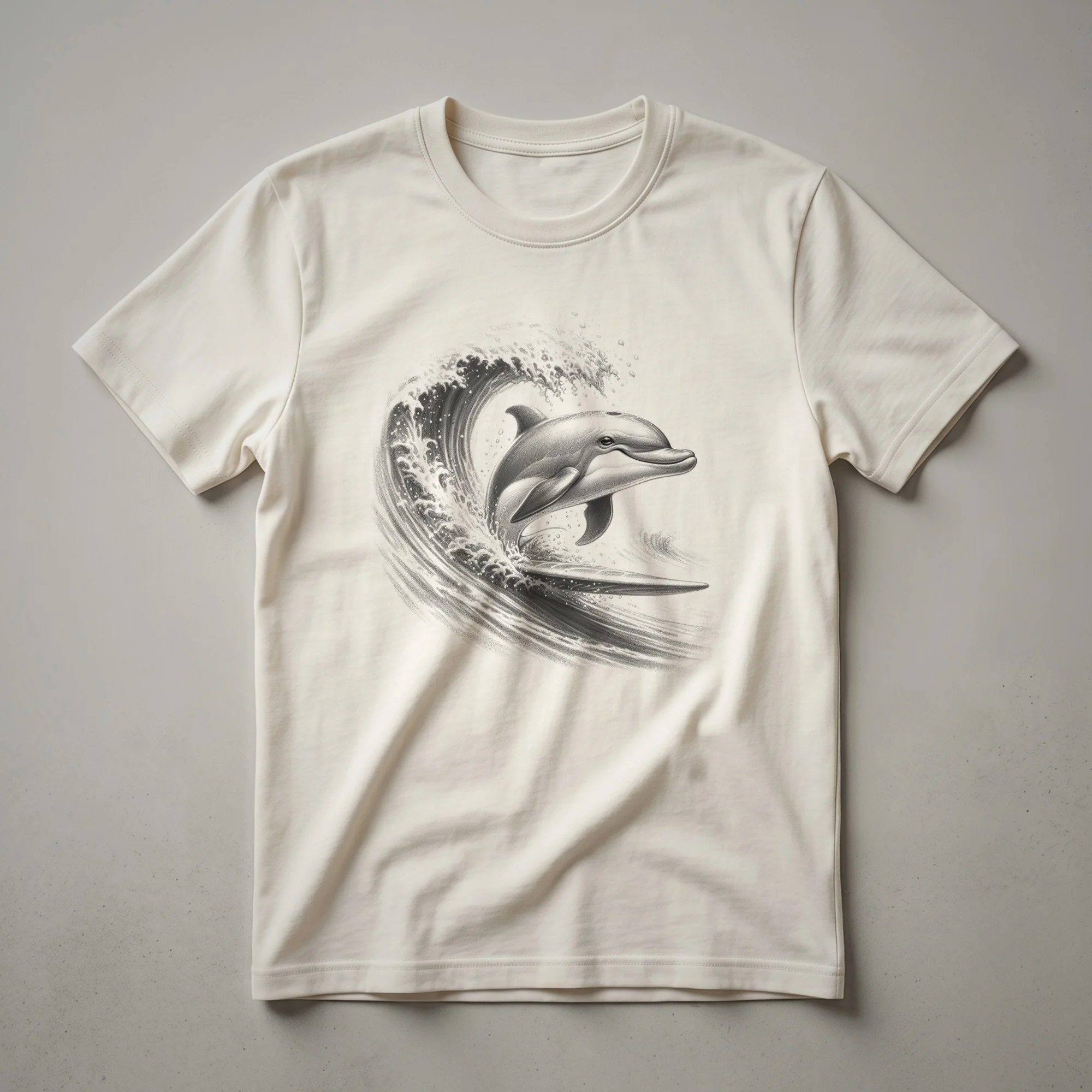 Ocean lovers and surfers will reach for this vibrant graphic tee featuring a dynamic dolphin leaping over a cresting wave. The design is set against a colorful sunset, evoking the feeling of a perfect day at the beach. Dolphins, known for their intelligence and playful nature, are often seen leaping from the water, a behavior that captivates onlookers. This t-shirt is a thoughtful gift for any man or woman who dreams of riding the waves or simply cherishes the beauty of marine life and coastal sunsets. Wear this shirt to your next beach outing, surf session, or casual gathering to showcase your passion for the ocean. It's a staple in the collection for anyone who feels a connection to the sea and its majestic creatures. The graphic captures the spirit of adventure and the freedom associated with surfing and the open water.