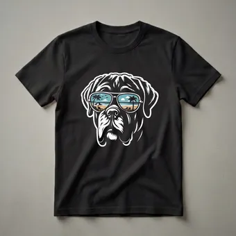 English Mastiff owners who appreciate a laid-back vibe will reach for this eye-catching graphic tee. The design features a bold illustration of an English Mastiff's head, rendered in a striking black and white style with white outlines. What truly sets this shirt apart are the sunglasses worn by the dog, which cleverly reflect a vibrant beach scene. Imagine palm trees swaying gently, a sandy shore, lounge chairs awaiting relaxation, and a clear blue sky with fluffy clouds and distant birds. This imagery evokes a sense of vacation and carefree living, a sentiment many dog parents can relate to. The English Mastiff breed is known for its gentle giant nature and calm demeanor, making this design a fitting representation for owners who cherish their loyal companions. This t-shirt makes a thoughtful gift for any English Mastiff mom or dad who dreams of beach getaways with their furry friend. Wear this tee to casual outings, dog park visits, or simply while relaxing at home, embodying the cool, relaxed spirit of your beloved Mastiff.