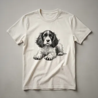 Dog lovers will adore this charming graphic t-shirt showcasing a sweet English Springer Spaniel puppy amidst a beautiful arrangement of blooming flowers. This eye-catching t-shirt features a delightful illustration of an English Springer Spaniel puppy, artfully intertwined with blooming floral elements. The design captures the breed's characteristic floppy ears and expressive eyes, making it a standout piece for any dog enthusiast. English Springer Spaniels, originally bred in England for flushing game, are known for their intelligence and eagerness to please, making them wonderful companions. This graphic tee is a thoughtful gift for the dog mom or dog dad who cherishes their canine family member. Whether you're heading to a dog park, running errands, or enjoying a casual day out, this shirt is a comfortable and stylish way to showcase your passion for your four-legged friend. It's a staple in the collection for anyone who believes their Springer Spaniel is part of the family. This shirt works well for expressing your unique bond with your beloved pet.