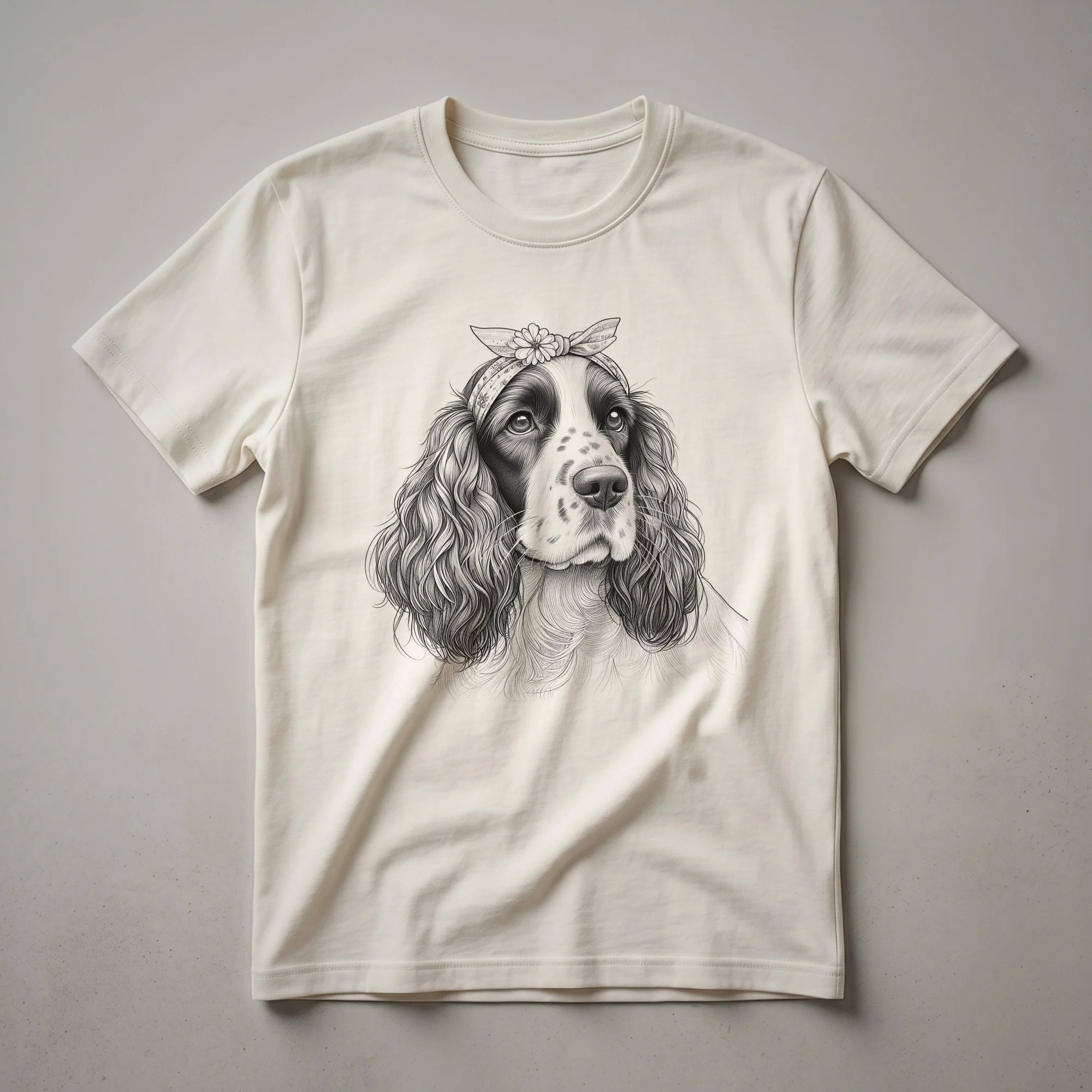 English Springer Spaniel owners know the breed's boundless energy and affectionate nature. This vintage-style graphic tee features a striking illustration of an English Springer Spaniel, rendered with a distressed aesthetic that evokes a classic feel. The design is a thoughtful choice for women who want to wear their passion for their canine companions. English Springer Spaniels are known for their distinctive floppy ears and their eagerness to please, making them wonderful family pets. This shirt is a thoughtful gift for any woman who cherishes her Springer Spaniel, whether it's for a birthday, holiday, or just because. Imagine wearing this comfortable t-shirt on a casual outing, a walk in the park with your dog, or while relaxing at home. It's a staple in the collection for any dog mom who appreciates unique and stylish apparel that celebrates her favorite breed. This eye-catching design is sure to spark conversations with fellow dog lovers. The breed originated in England and was historically used for flushing game birds.