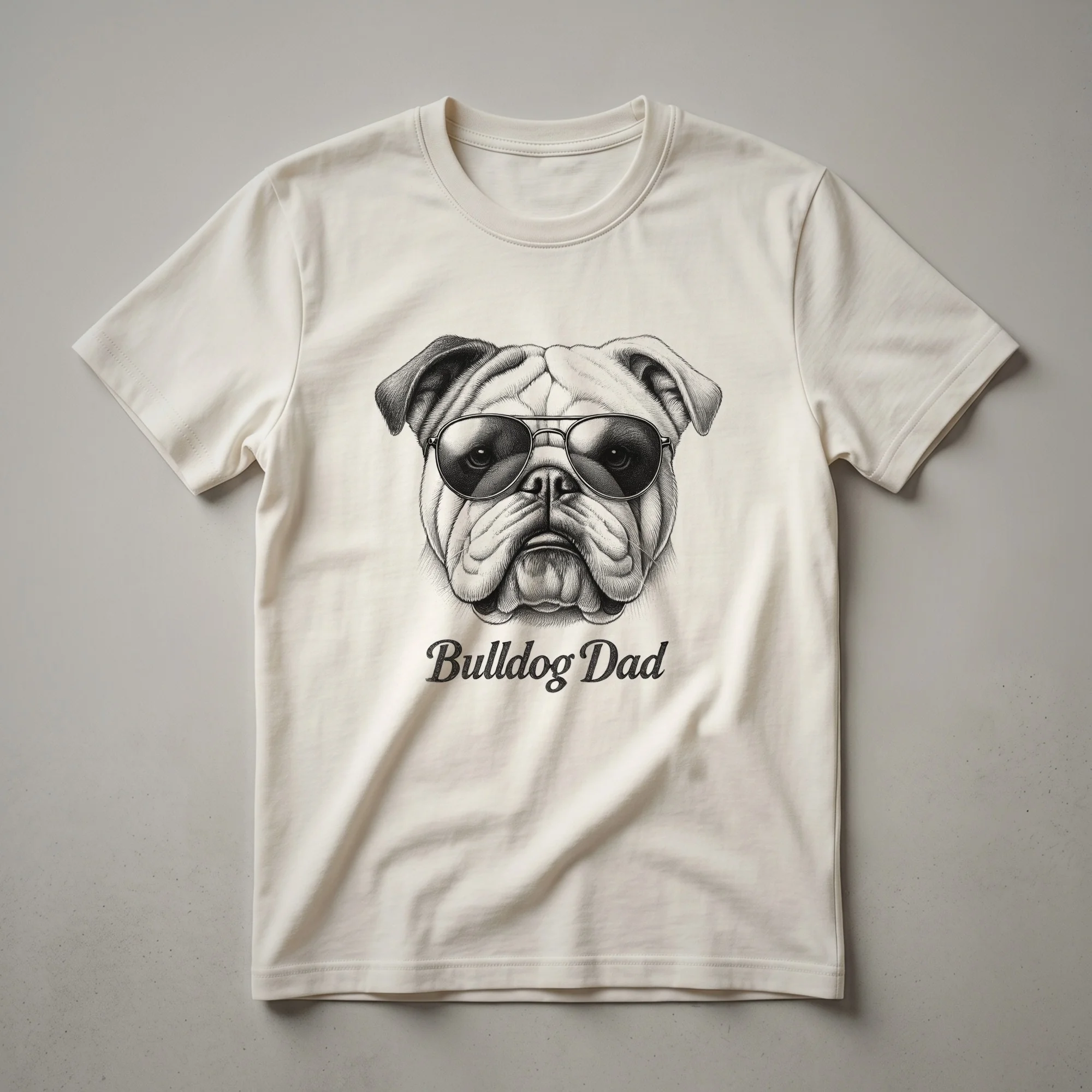 Bulldog dads who want to express their affection for their brachycephalic companions will reach for this eye-catching tee. The design features a stylized bulldog face, intricately rendered with floral elements. This graphic shirt is a unique way for men to showcase their role as a devoted dog owner. Bulldogs, known for their distinctive wrinkled faces and muscular build, originated in England and were initially bred for bull-baiting. Their gentle and affectionate nature, however, has made them popular family pets worldwide. This t-shirt celebrates that bond, blending the charm of the breed with a touch of floral artistry. It makes a thoughtful gift for any father figure who cherishes his bulldog, whether for a birthday, Father's Day, or just because. Wear this shirt to your next dog park visit or casual outing to spark conversations with fellow dog enthusiasts. It's a staple in the collection for any man who proudly identifies as a bulldog dad.