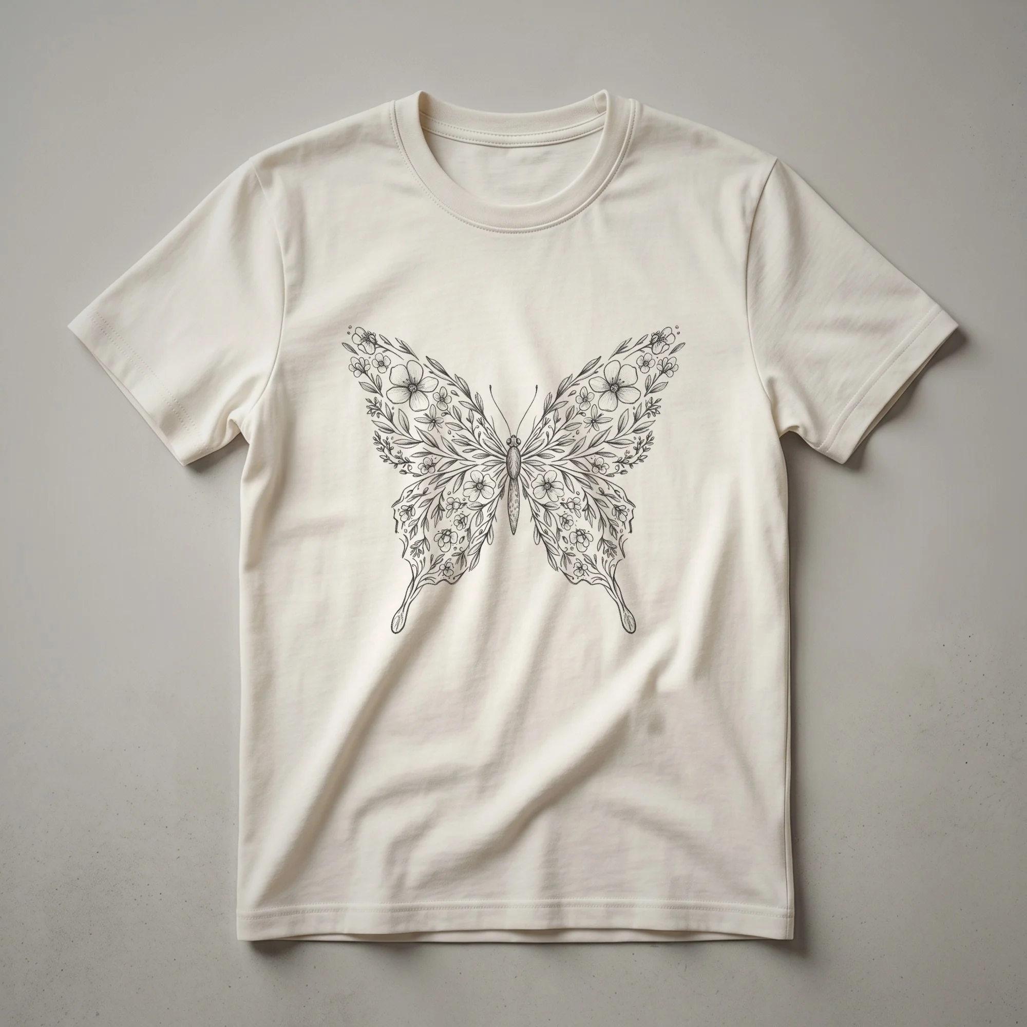 Nature lovers and admirers of delicate insects will reach for this striking graphic tee. The design features a beautifully rendered butterfly, its wings adorned with intricate floral patterns and blooming flowers. Butterflies, like the Monarch, undertake incredible migrations, traveling thousands of miles each year, a testament to their resilience and connection to the natural world. This t-shirt captures that essence of natural beauty and transformation. It's a staple in the collection for anyone who finds joy in the outdoors, woodland walks, or simply appreciating the vibrant colors of a garden in bloom. This shirt works well for women who enjoy botanical art and the gentle flutter of wings. It makes a thoughtful gift for a friend or family member who cherishes the beauty of the natural world. Wear it on your next hike, to a casual brunch, or while tending to your own garden, celebrating the wonders of wildlife and flora.