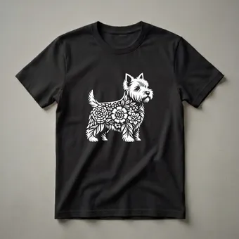 Cairn Terrier enthusiasts who appreciate unique artistry will adore this striking graphic tee. The design features a detailed silhouette of a Cairn Terrier, its entire body intricately filled with a beautiful arrangement of flowers and leaves. This eye-catching pattern transforms the familiar shape of the beloved breed into a vibrant, blooming work of art. Cairn Terriers, originally from the Scottish Highlands, are known for their spirited and curious nature, making them a wonderful companion. This shirt is a thoughtful gift for any Cairn Terrier mom or dad, celebrating their bond with their canine family member. It's a go-to tee for casual outings, dog park visits, or simply relaxing at home, offering a stylish way to express your passion for this charming breed. Wear this unique t-shirt to show off your affection for your four-legged friend. This apparel is a fantastic way to celebrate the joy these dogs bring into our lives.