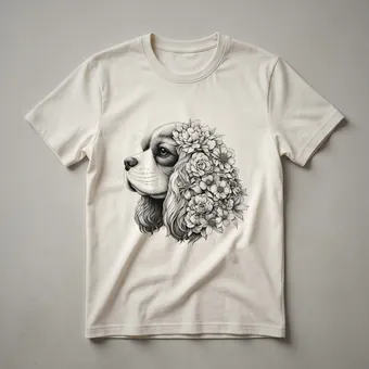 - A unique floral Cavalier King Charles Spaniel head graphic tee for devoted owners.