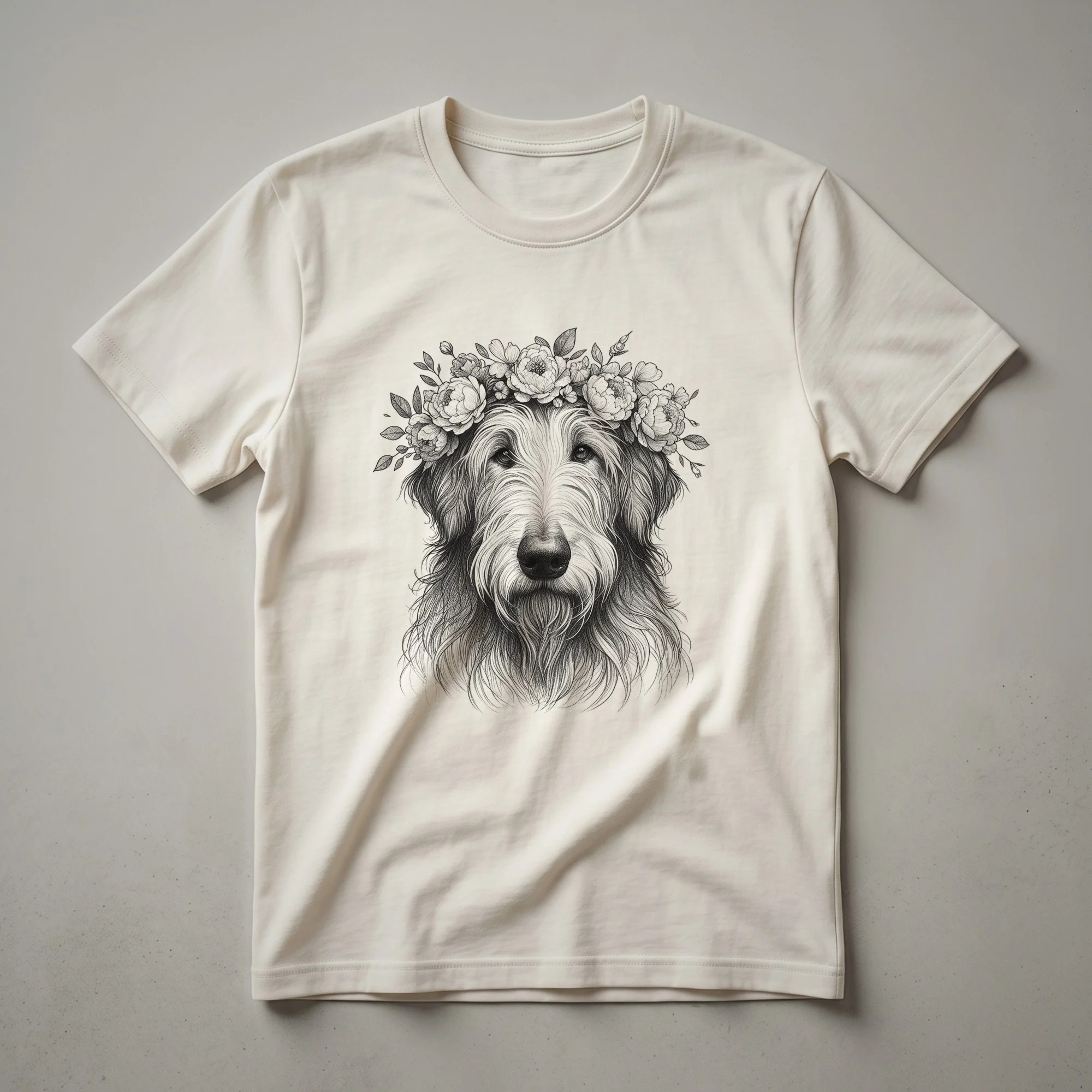 Irish Wolfhound moms who adore their gentle giants will reach for this eye-catching tee. The design features the distinctive head of an Irish Wolfhound, rendered with a soft, artistic touch and framed by a vibrant floral arrangement. This striking graphic tee celebrates the breed's noble presence and gentle nature, making it a standout piece for any dog enthusiast. Irish Wolfhounds, known for their impressive stature and calm demeanor, are often called "gentle giants" and are one of the tallest dog breeds in the world. This shirt is a thoughtful gift for the dog mom who cherishes her Irish Wolfhound, whether it's for a birthday, holiday, or just because. Wear this t-shirt to your next dog park visit, a casual outing with friends, or while relaxing at home with your beloved canine companion. It's a wonderful way to express your passion for this magnificent breed and connect with fellow dog lovers.