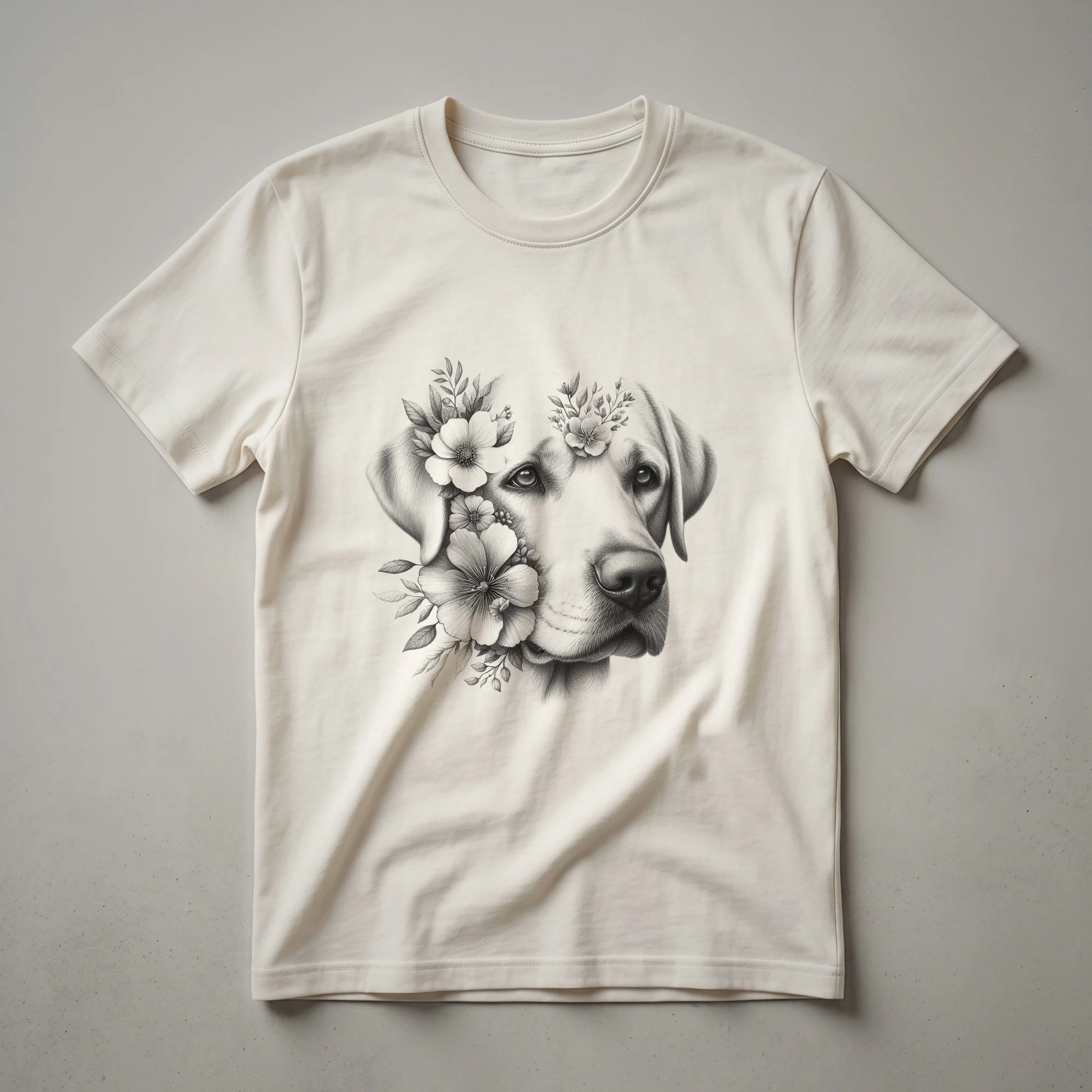 - Floral Labrador Retriever graphic tee for devoted dog moms and dads.