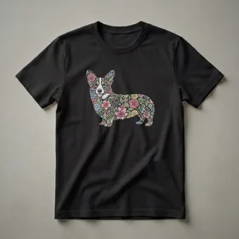 - Features a detailed watercolor-style floral design within a Corgi silhouette.