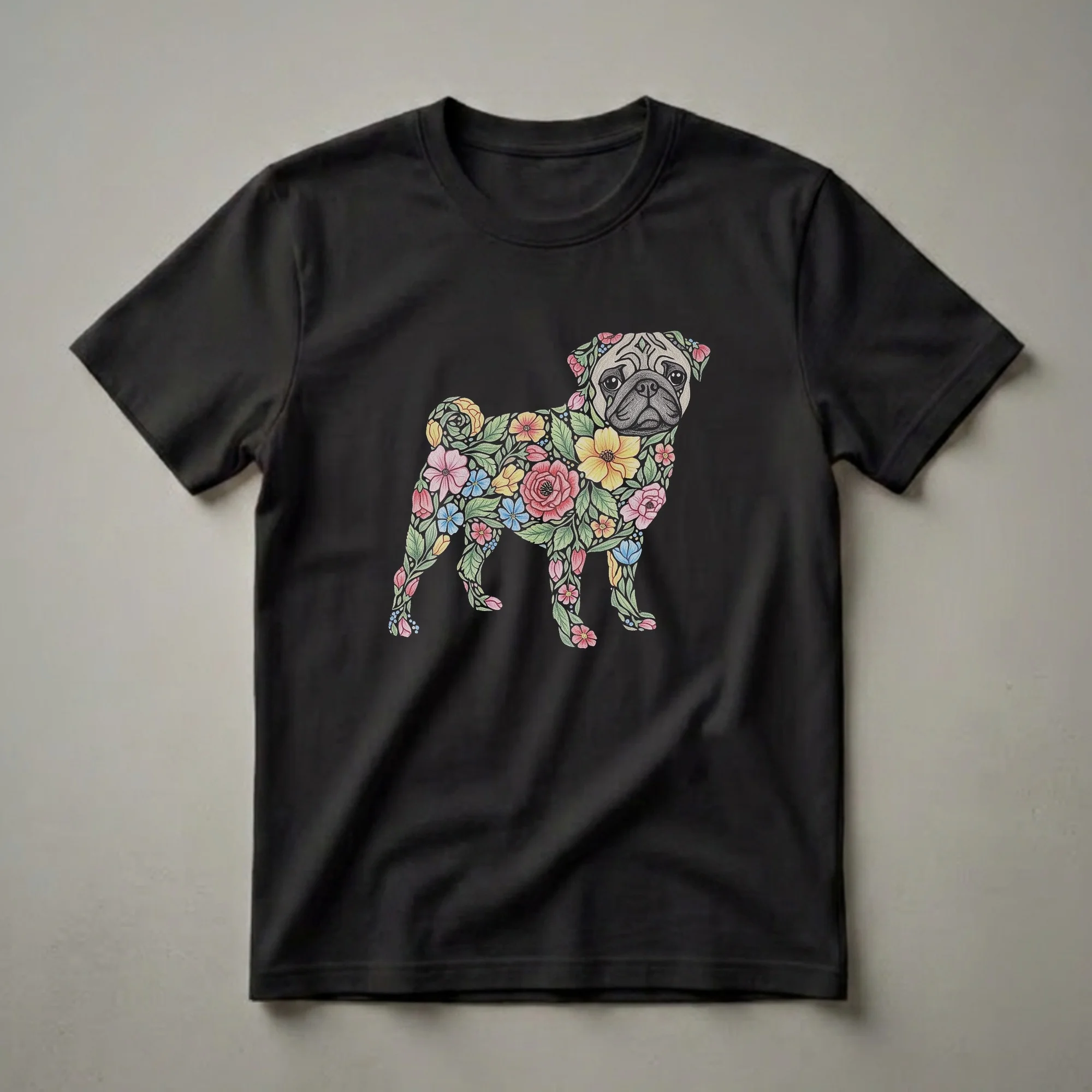 Hover to zoom · tap to expand Floral Pug Art T-Shirt for Dog Lovers and Garden Enthusiasts