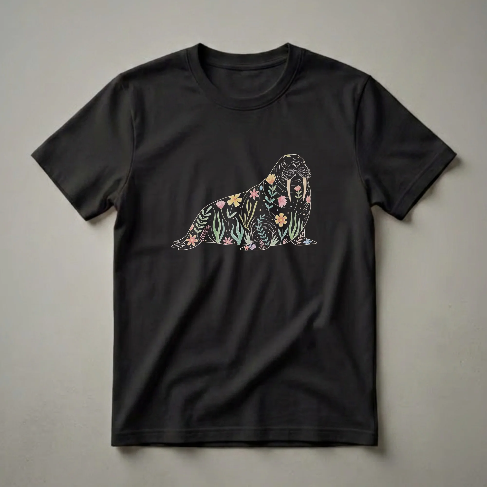 Hover to zoom · tap to expand Floral Walrus Art T-Shirt for Marine Life Enthusiasts
