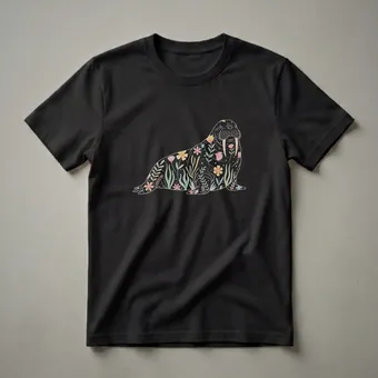 Walrus lovers will appreciate this eye-catching graphic tee featuring a unique artistic interpretation of the marine mammal. The design showcases a walrus silhouette intricately filled with a vibrant array of colorful flowers, leaves, and delicate foliage, all outlined in a subtle white line. This striking visual blends the raw power of the walrus with the gentle beauty of a botanical garden. Walruses, known for their impressive tusks and blubbery bodies, are found in the Arctic regions of the Pacific and Atlantic Oceans, often hauling out on ice floes or rocky shores. This t-shirt works well for anyone who admires these fascinating creatures and enjoys unique, nature-inspired art. It makes a thoughtful gift for marine biologists, oceanographers, or anyone who feels a connection to the Arctic ecosystem. Wear this shirt to the aquarium, a nature documentary screening, or simply as a conversation starter during casual outings. This comfortable tee is a staple for your collection if you appreciate marine wildlife and artistic expression.