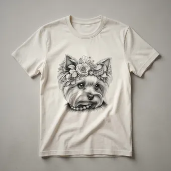- Showcase your Yorkshire Terrier mom pride with this artistic floral dog face graphic.