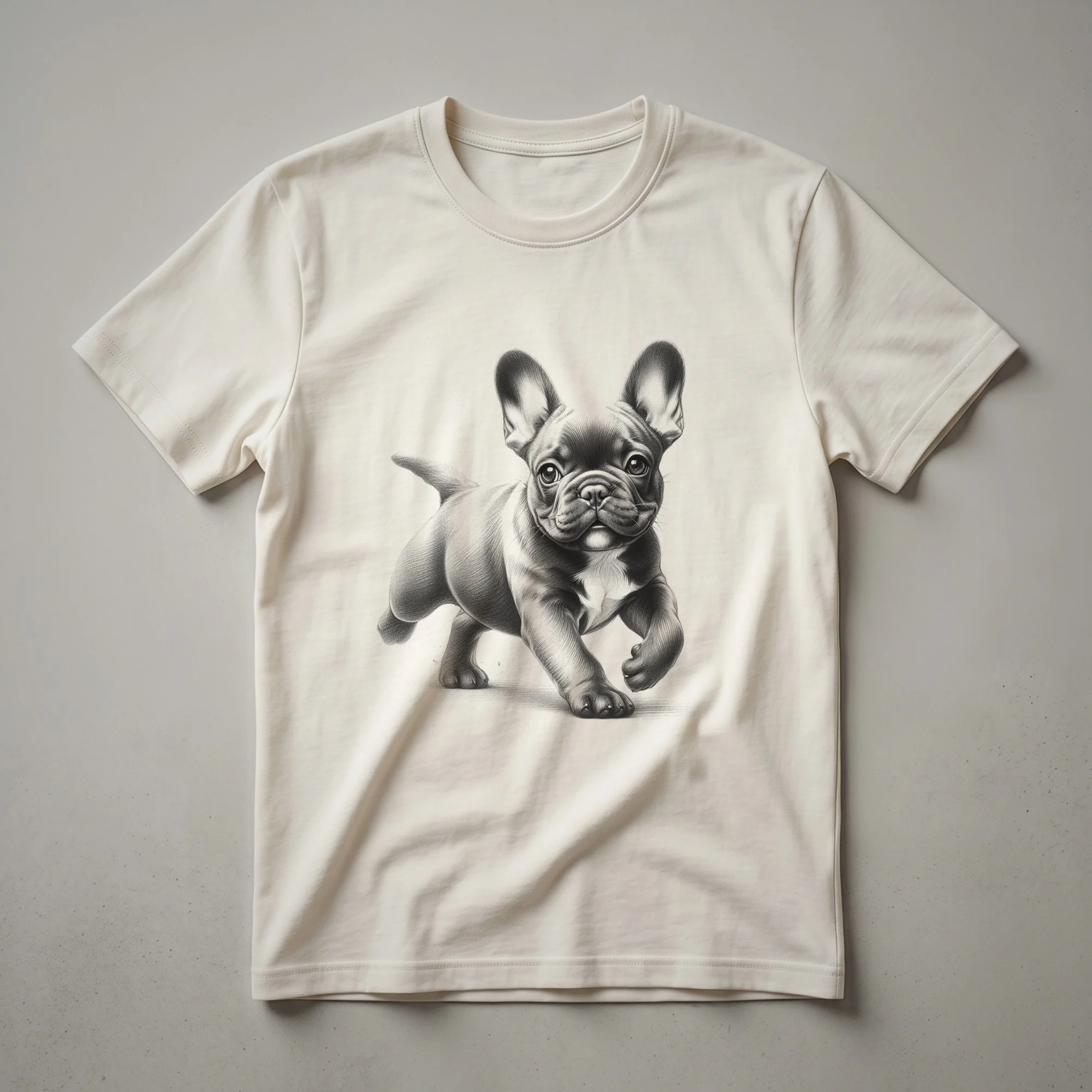 - Features a distressed French Bulldog running design.