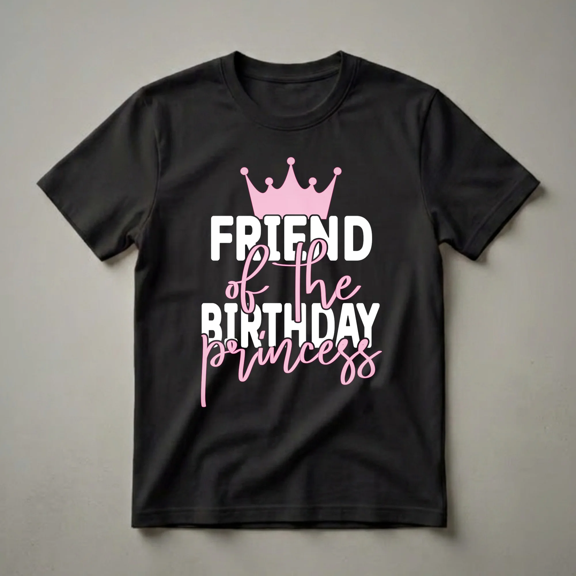 - Features a pink crown and 'FRIEND of the BIRTHDAY princess' text.