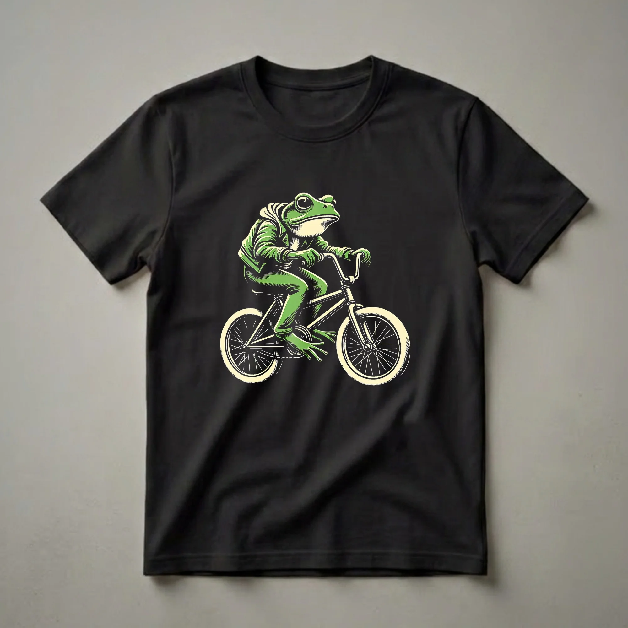 Hover to zoom · tap to expand Frog Riding a Bicycle Graphic Art T-Shirt for Animal Lovers