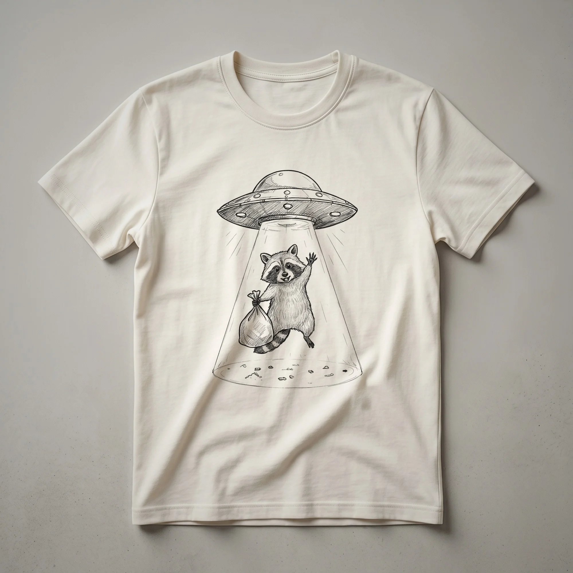 - Features a humorous graphic of a raccoon piloting a UFO, a hit for alien and animal lovers.