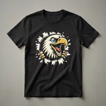 - Features a striking design of a bald eagle bursting through a torn background.