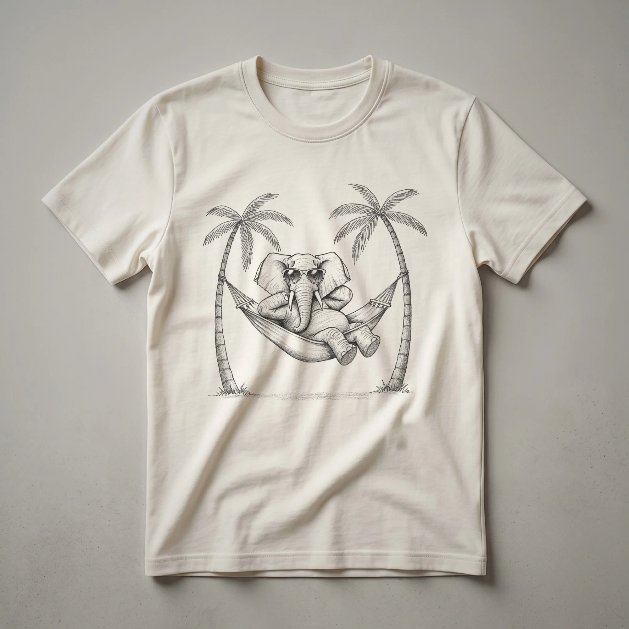 Elephants, known for their intelligence and gentle nature, are often depicted in art and media as symbols of wisdom and strength. This graphic tee playfully subverts that image with a whimsical cartoon elephant sporting a pair of stylish sunglasses and standing near a couple of tropical palm trees. The design evokes a sense of vacation and carefree fun, making it a lighthearted addition to any wardrobe. This t-shirt is a thoughtful gift for elephant enthusiasts, animal lovers, or anyone who appreciates a good chuckle. It's a go-to tee for casual outings, game nights, or simply lounging around. The playful imagery is sure to spark conversations and bring a smile to faces. Whether you're heading to a casual get-together or just want to add some personality to your everyday wear, this elephant shirt offers a unique blend of humor and tropical flair. It’s a staple for those who enjoy quirky animal designs and a touch of vacation-inspired style, making it a standout piece for anyone who loves to express their fun-loving side.