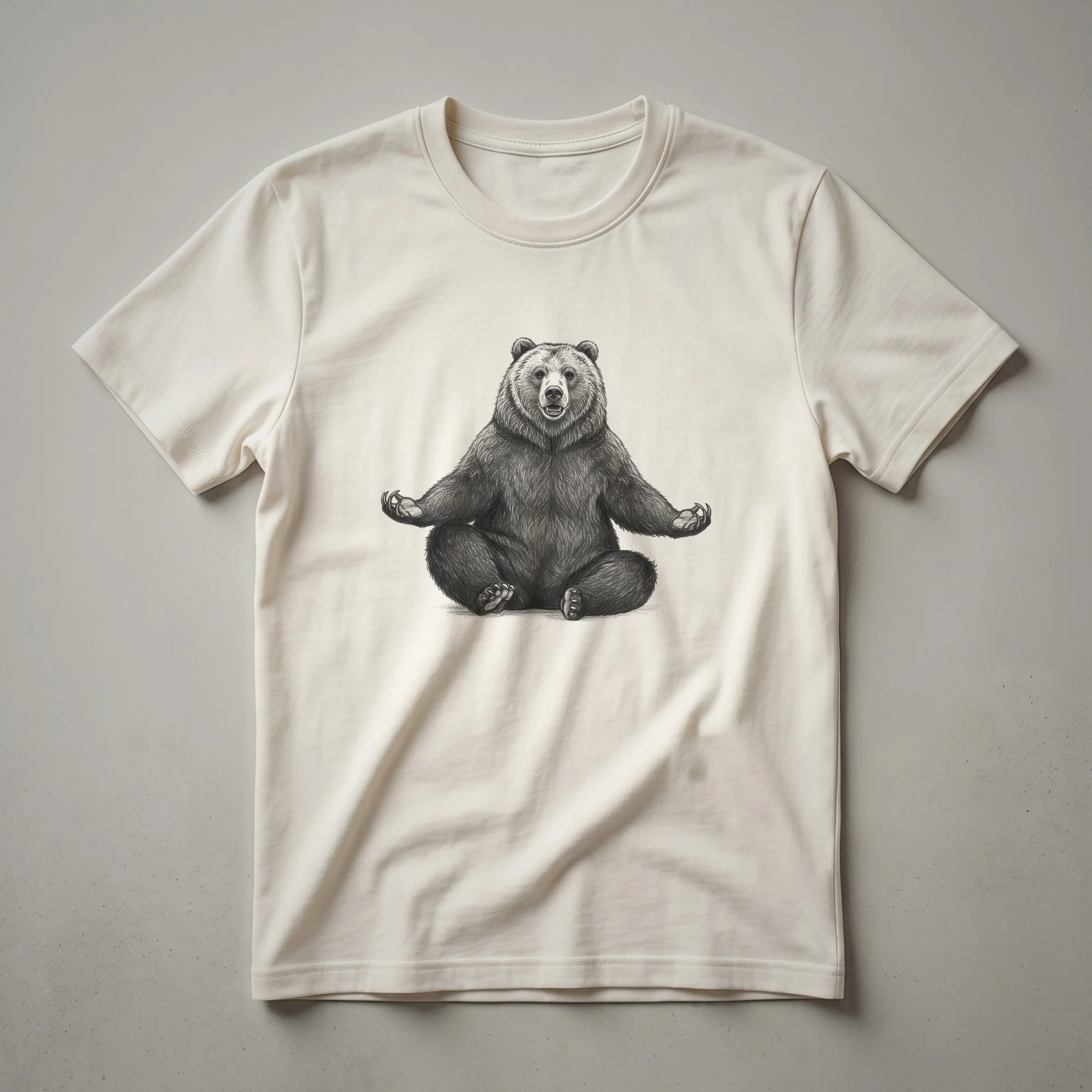 Grizzly bears, known for their immense power and presence in North American wilderness, are depicted here in an unexpected and humorous yoga pose. This graphic t-shirt showcases a whimsical drawing of a grizzly bear attempting a yoga asana, bringing a smile to anyone who appreciates both wildlife and wellness. The artwork captures the contrast between the bear's formidable nature and the serene practice of yoga, creating a striking visual. This tee is a thoughtful gift for fitness enthusiasts who enjoy a good laugh, yoga practitioners looking for unique apparel, or anyone who loves bears and wants to wear their passion. It's a conversation starter, whether you're heading to the gym, a yoga class, or just out and about. The design is a playful reminder that even the mightiest creatures can find their zen. This shirt is a go-to tee for those who believe in balance, strength, and a touch of humor in their daily lives. It’s a staple in the collection for anyone who wants to express their love for fitness and the wild.