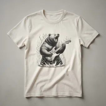 Grizzly bears, known for their immense power and presence in North American wilderness, are depicted here in a surprisingly musical light. This graphic t-shirt showcases a cartoon grizzly bear in full rockstar mode, strumming an electric guitar with passion. The bear is rendered in a playful, illustrative style, making it an engaging visual for anyone who appreciates both wildlife and music. Electric guitars, with their amplified sound, have revolutionized music genres from rock and blues to metal and pop, offering a vast sonic palette for players. This shirt is a thoughtful gift for guitarists who enjoy a touch of humor and a connection to the wild. It's a staple in the collection for musicians who want to express their dual passions. Wear this tee to band practice, a casual jam session, or just out and about to spark conversations about your love for music and bears. It’s a unique way for any bear enthusiast or aspiring guitarist to showcase their personality.