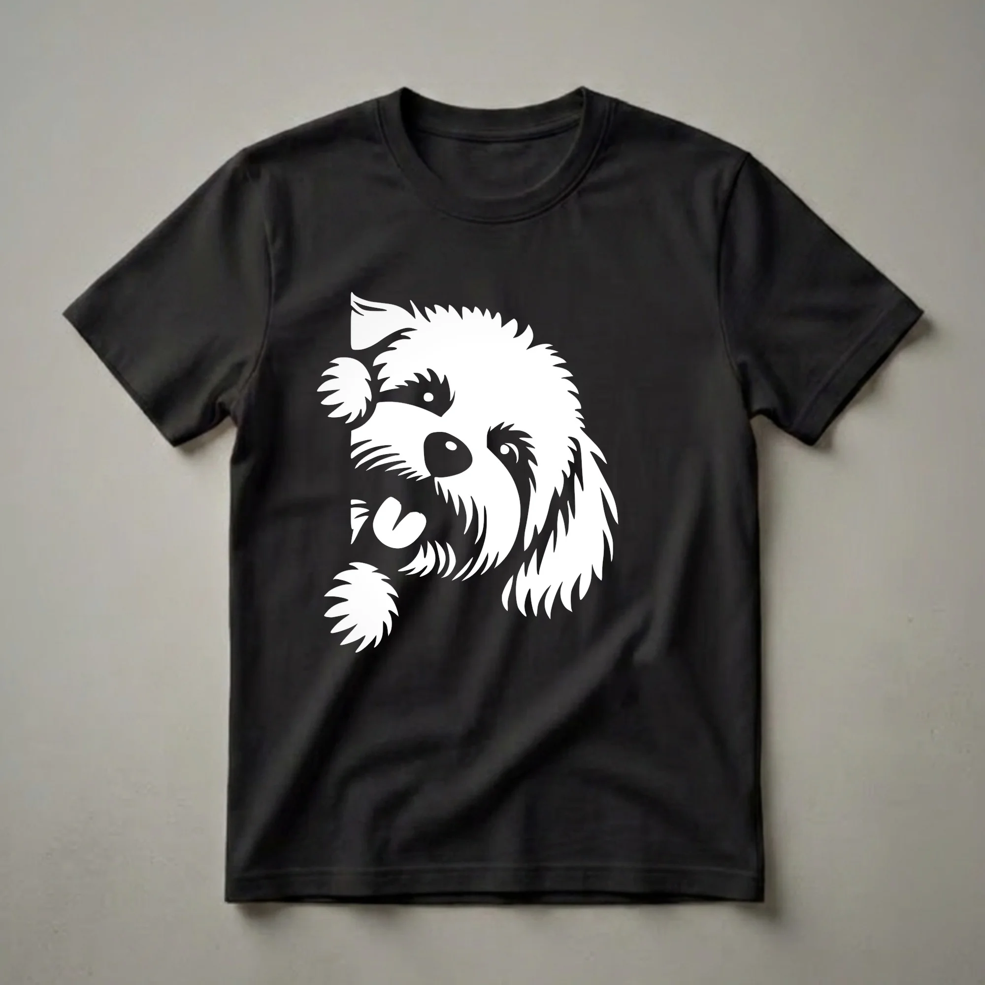 Maltipoo owners know the joy these fluffy companions bring into their lives. This graphic tee features a charming white illustration of a Maltipoo's face, peeking out from the side with a playful expression and its tongue slightly out. The design captures the breed's characteristic curly or wavy coat and endearing features, rendered in a clean, bold stencil style against a contrasting background. Maltipoos, a crossbreed between a Maltese and a Poodle, are known for their affectionate nature and intelligence, making them a popular choice for families and individuals seeking a loving pet. This t-shirt is a thoughtful gift for any Maltipoo mom or dad who cherishes their dog's unique personality. It's a go-to tee for casual outings, walks in the park, or simply relaxing at home with your furry best friend. Wear this shirt to express your adoration for your canine companion and spark conversations with fellow dog enthusiasts. This apparel is a staple for any Maltipoo lover's wardrobe.