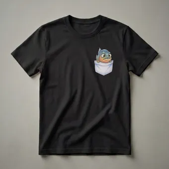 Showcase your love for aquatic life with this hilarious t-shirt featuring a mischievous piranha peeking out from a pocket.This eye-catching graphic tee showcases a playful, cartoon-style piranha peeking over the edge of a white pocket. The fish has large, expressive eyes and a slightly menacing grin, making it an instant conversation starter. This t-shirt is a thoughtful gift for anyone who appreciates unique animal humor, aquarium enthusiasts, or those who simply enjoy a quirky design. It's a staple in the collection for those who want to wear their love for aquatic life with a touch of wit. This shirt works well for casual outings, game nights, or just lounging around. The detailed drawing style adds a unique artistic flair to this fun piece of apparel. It’s a go-to tee for anyone looking to add some personality to their wardrobe. Imagine wearing this to your next casual get-together and sparking smiles with its unexpected design.