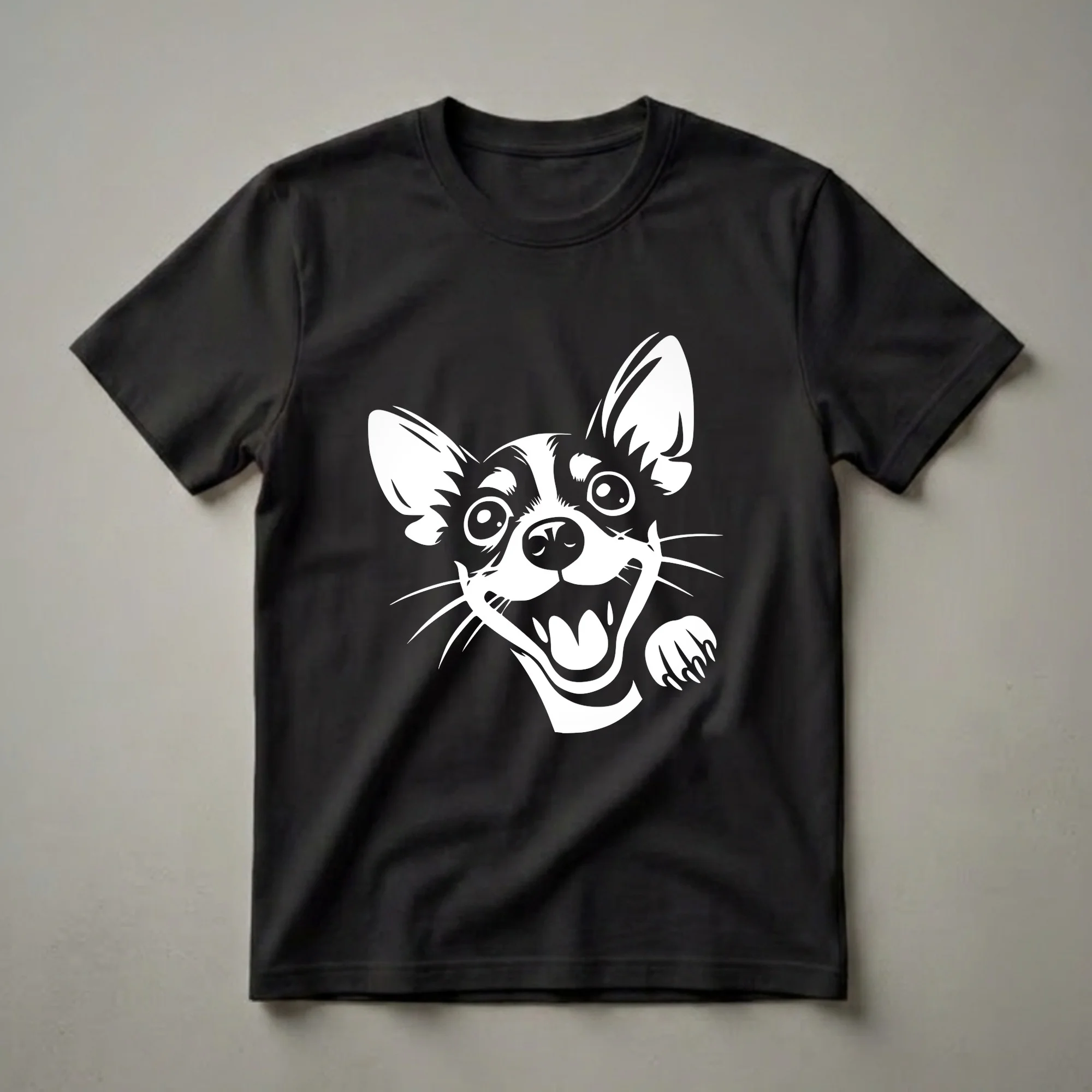 Rat Terrier enthusiasts will reach for this eye-catching graphic tee featuring a playful dog peeking out with a wide, happy grin. The striking white design on a dark background captures the breed's characteristic alertness and spirited personality. Rat Terriers are known for their intelligence and boundless energy, often described as a fearless and curious breed. This shirt is a thoughtful gift for any Rat Terrier mom or dad who cherishes their canine companion's lively nature. Imagine wearing this t-shirt to a dog park meet-up or a casual weekend brunch with fellow dog lovers. It’s a fun way to express your affection for your furry friend and spark conversations about your favorite breed. This unique dog shirt is a staple for any dog owner's wardrobe, celebrating the joy that Rat Terriers bring into our lives. The design’s bold lines and expressive features make it a standout piece for anyone who appreciates canine charm.